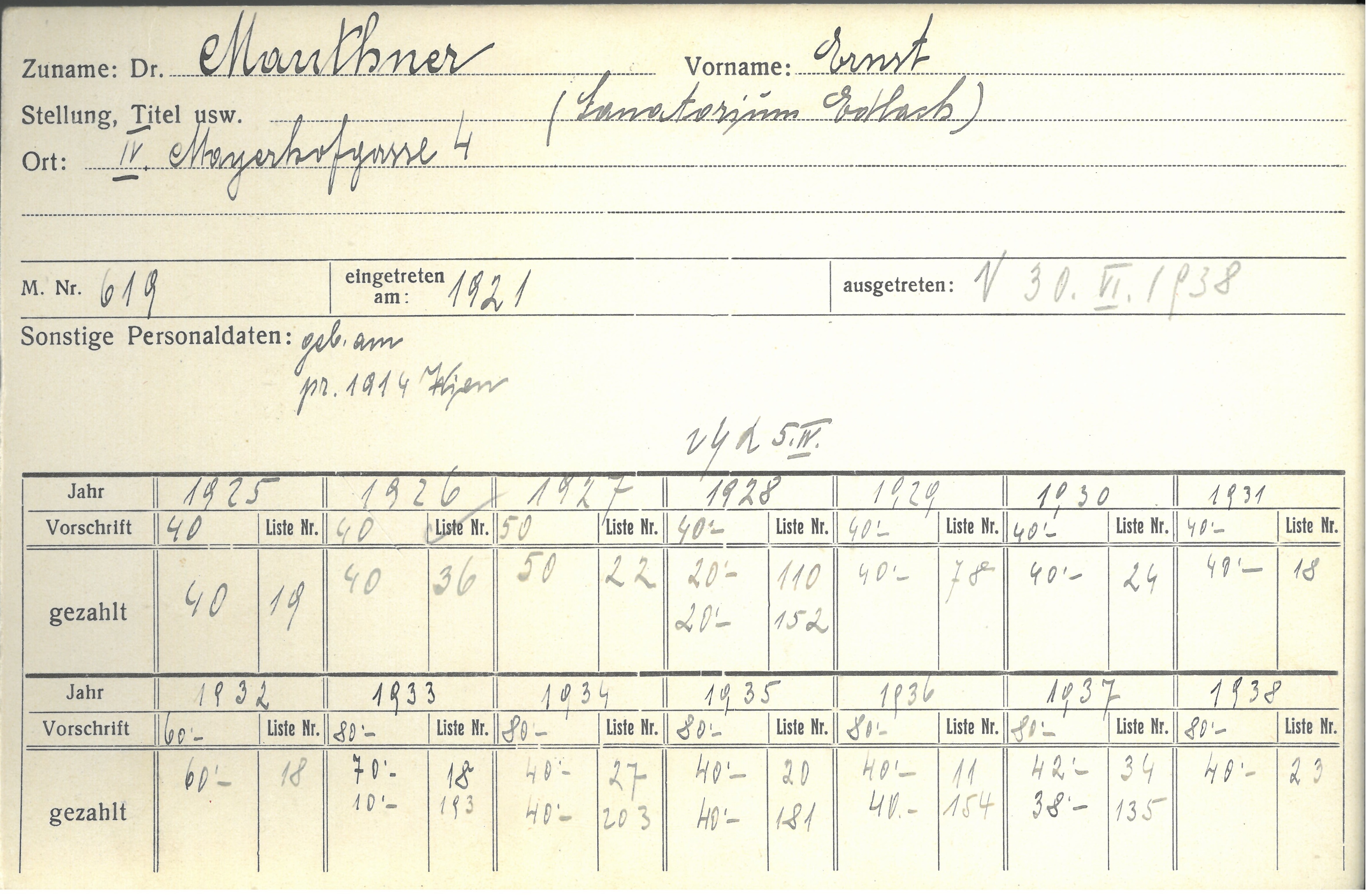 Adresse (von Karteikarte) Mayerhofgasse 4, 1040 Wien