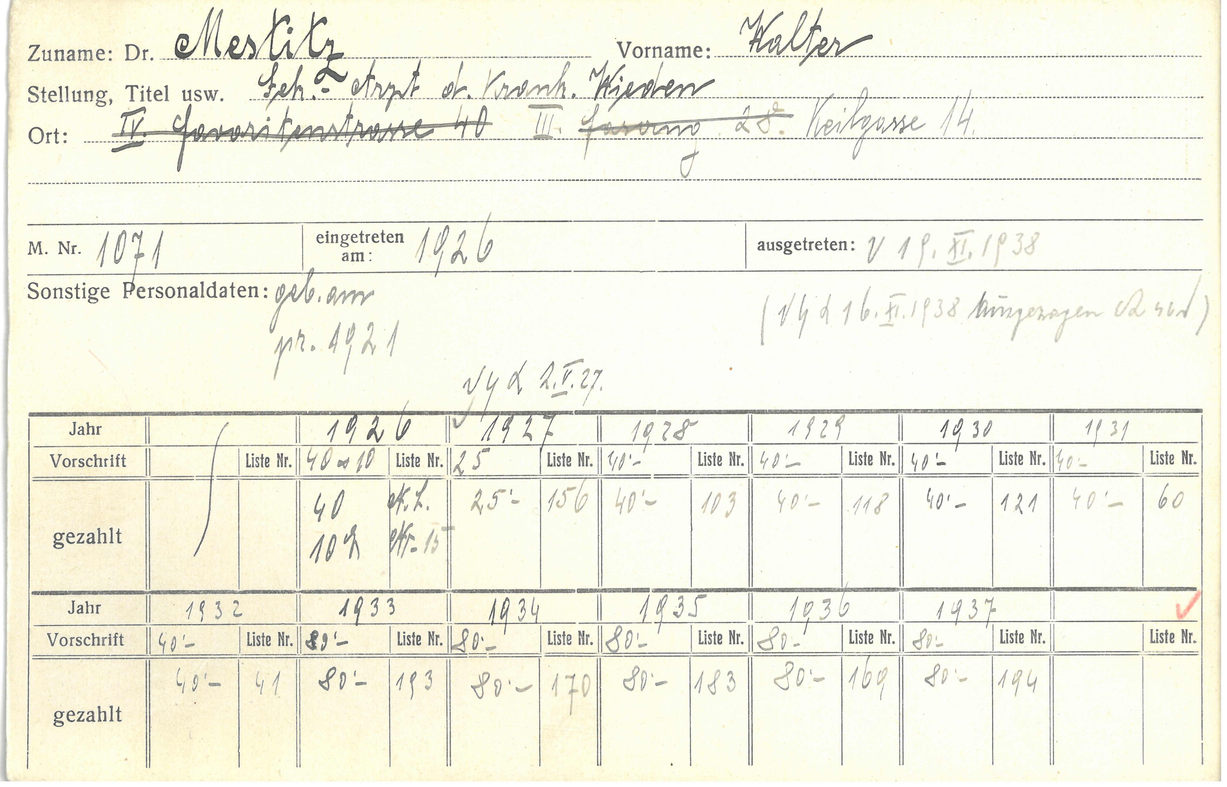 Walter Mestitz (1896–1959) gelang die Flucht nach London, wo er am 29 Oktober 1959 im Alter von 63 verstarb. Text: Josef Hlade