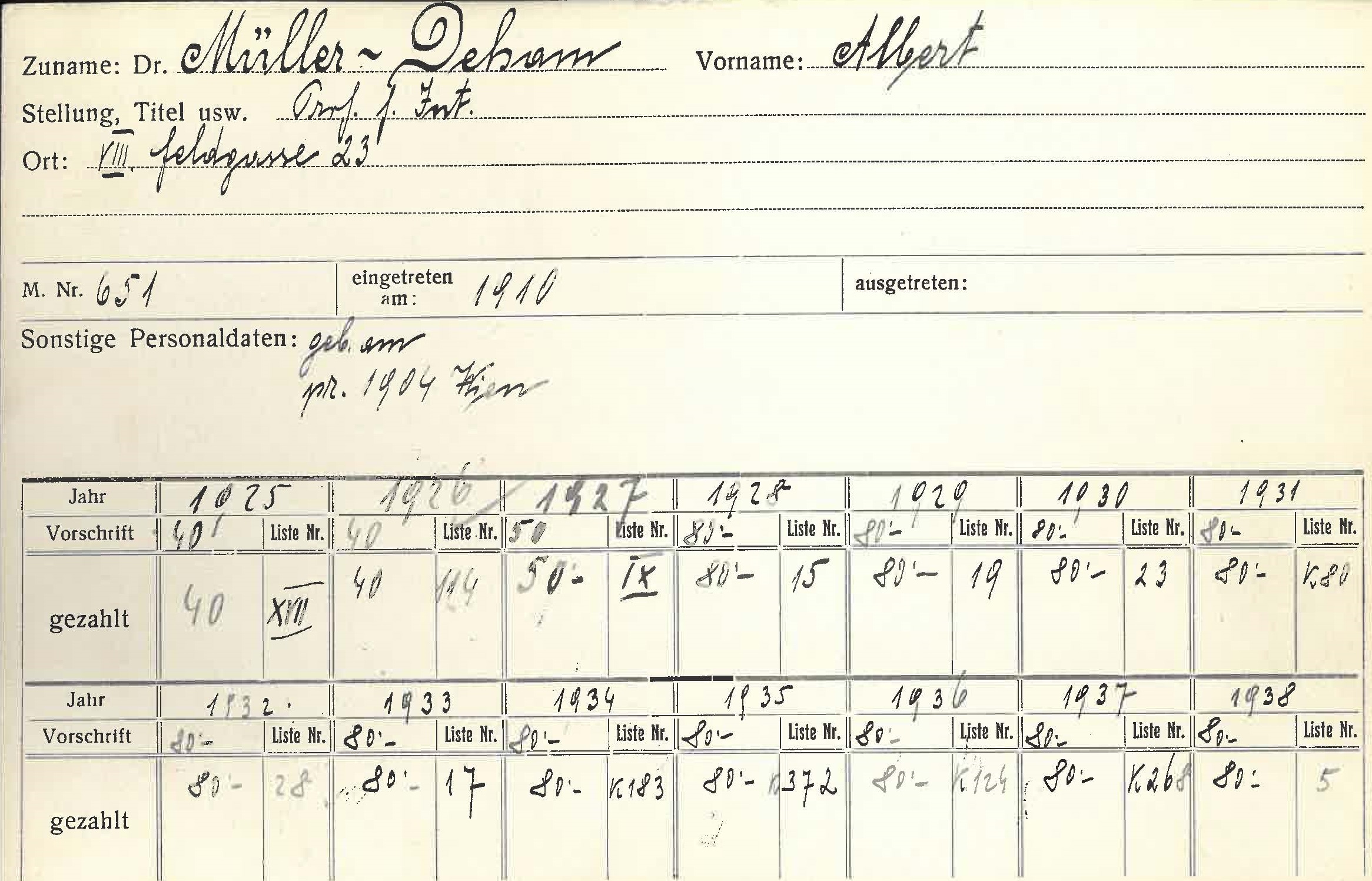 Albert Müller-Deham promovierte 1904 und arbeitete bis 1923 als Assistent
