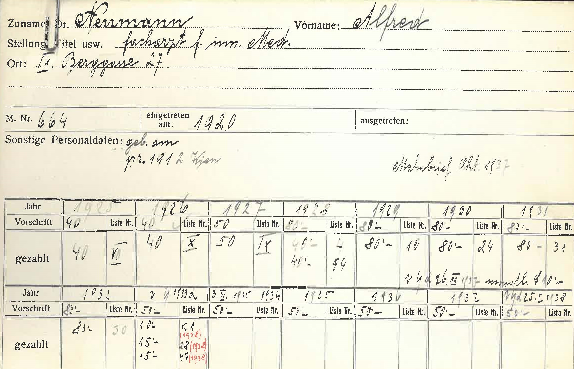 Adresse (von Karteikarte) Berggasse 27, 1090 Wien