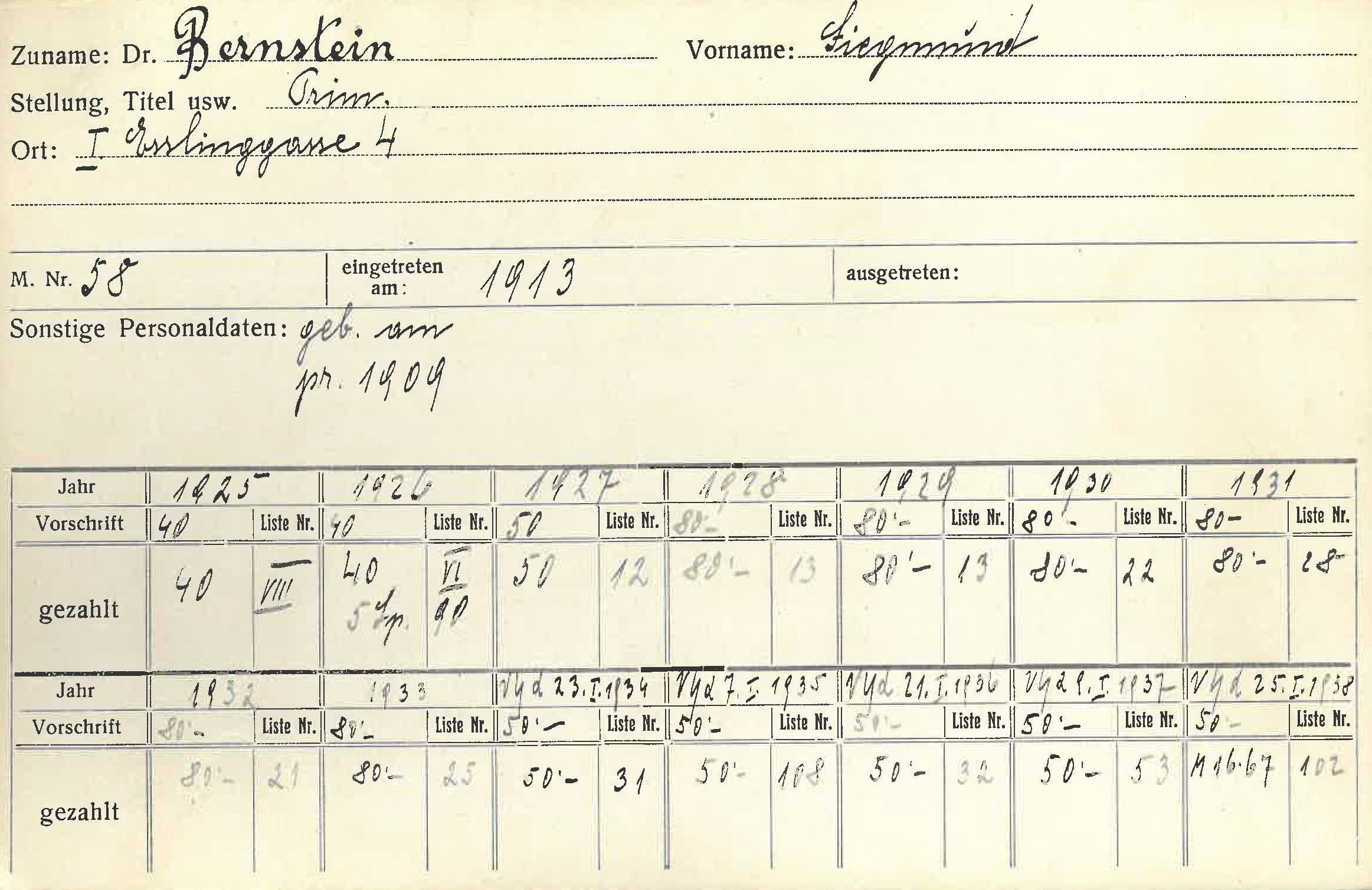 Für Bernstein übermittelt und Fischer keine Vorträge in der Gesellschaft der Ärzte in Wien.