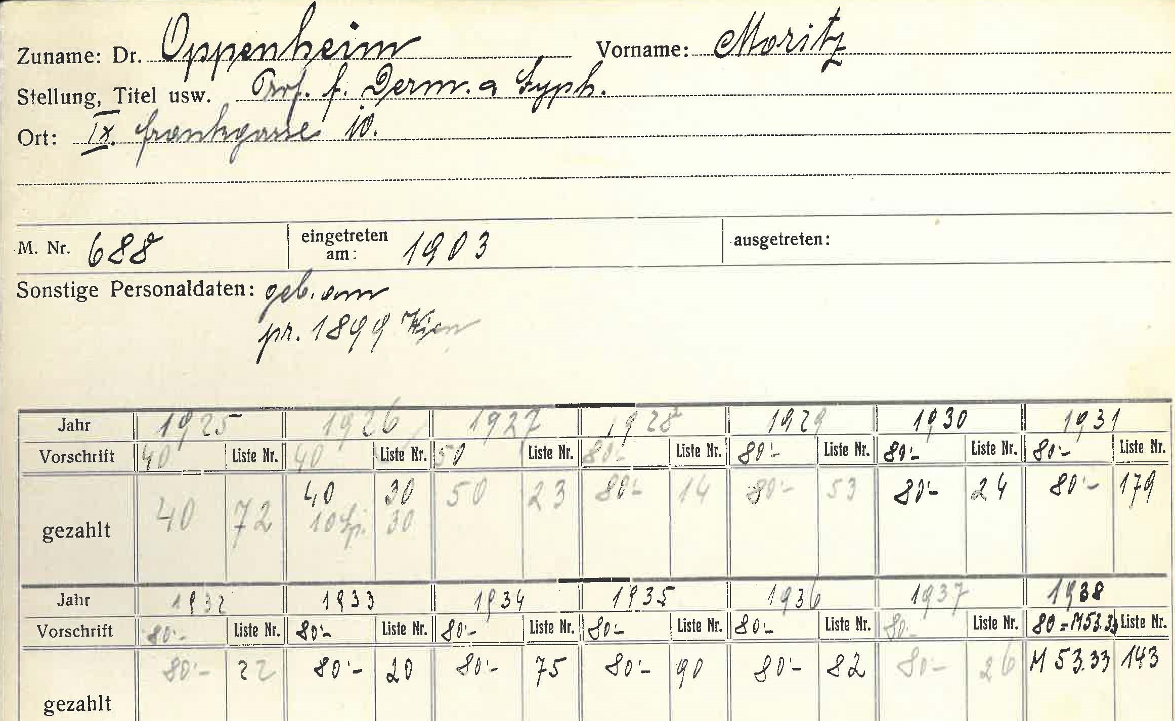 Oppenheimer lehrte bis zu seiner Vertreibung im April 1938 die Fächer Dermatologie