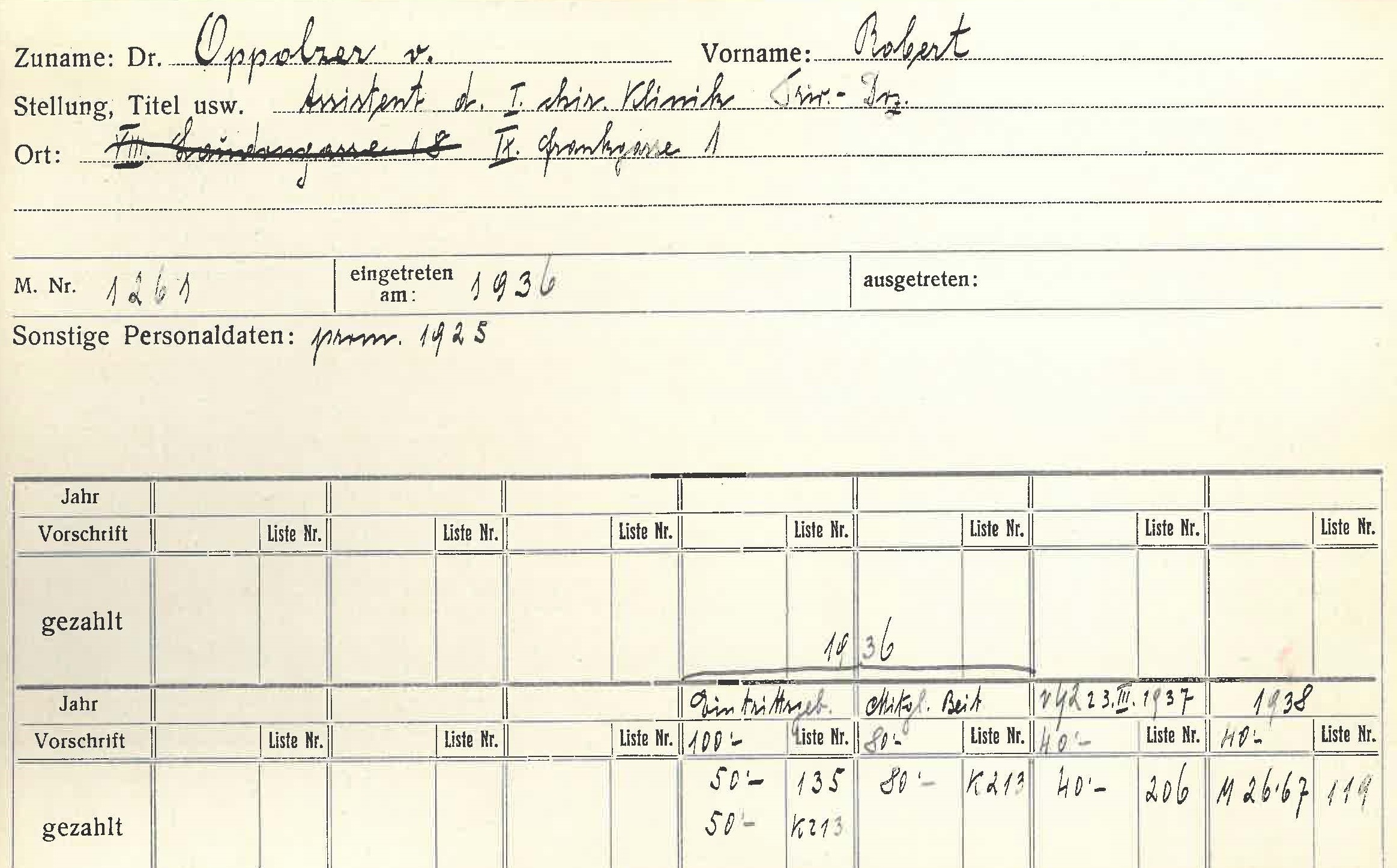Oppolzer promovierte 1925 in Wien und arbeitete als Hilfsarzt an der III.