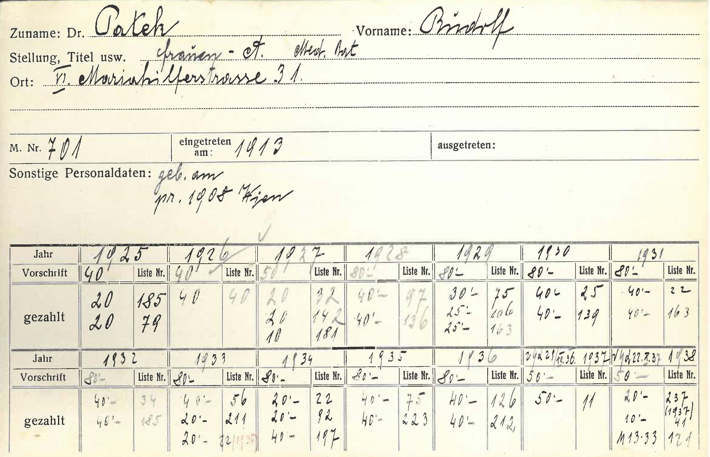 Adresse (von Karteikarte) Mariahilfer Straße 31, 1060 Wien