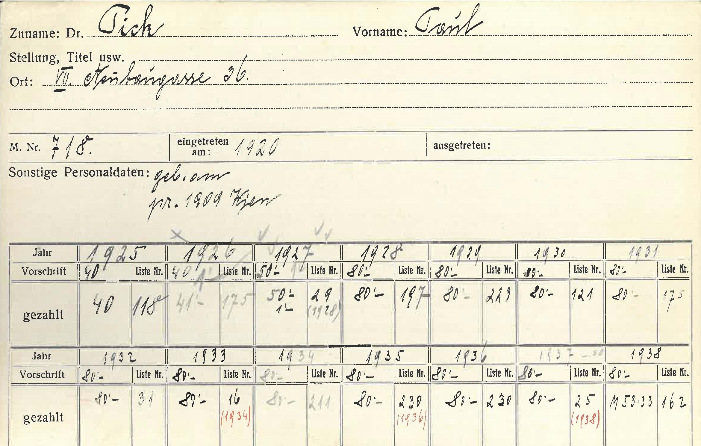 Adresse (von Karteikarte) Neubaugasse 36, 1070 Wien