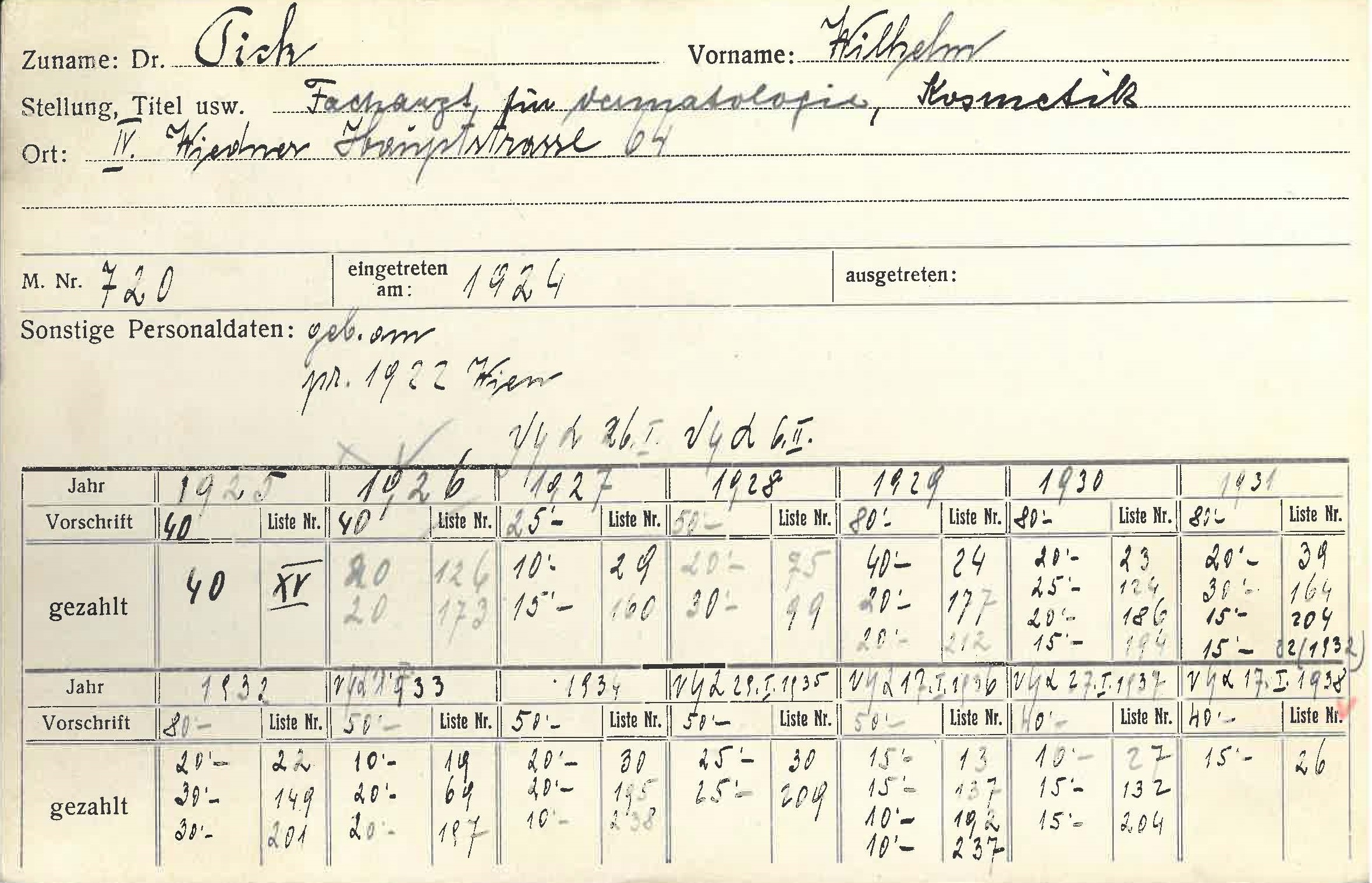 Adresse (von Karteikarte) Wiedner Hauptstraße 64, 1040 Wien
