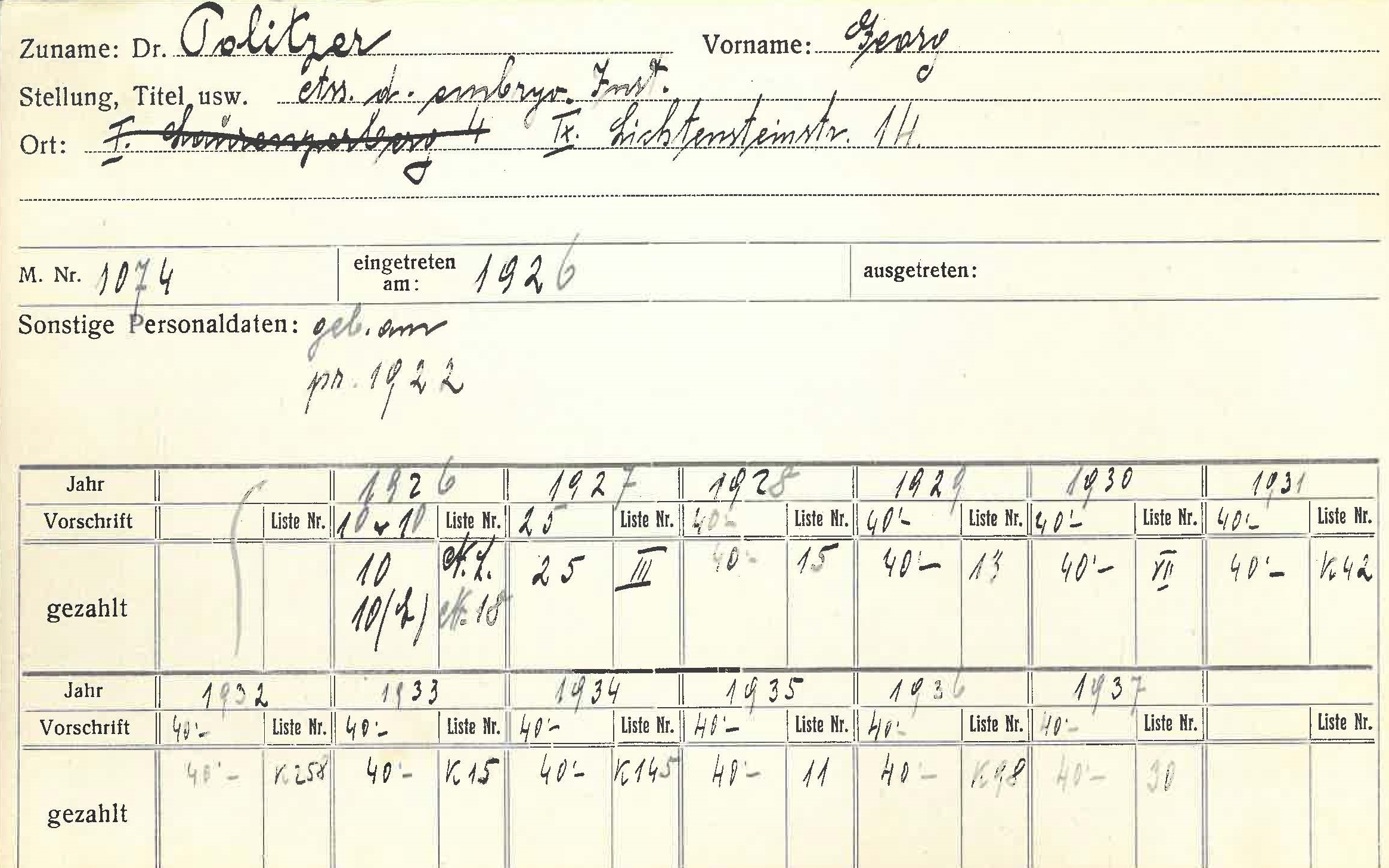 Georg Politzer promovierte 1922 in Wien und erlangte bereits sieben Jahre