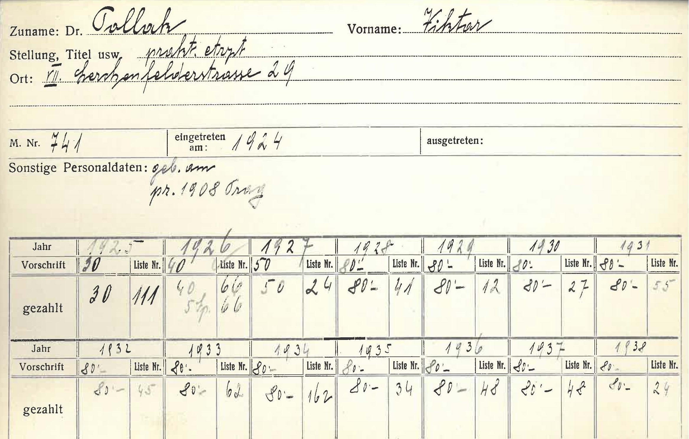 Trat am 3.3.1939 aus der Israelitischen Kultusgemeinde aus, sein weiteres Schicksal ist unbekannt. Sein Bruder Otto Pollak (1882-1942) wurde im Holocaust ermordet.