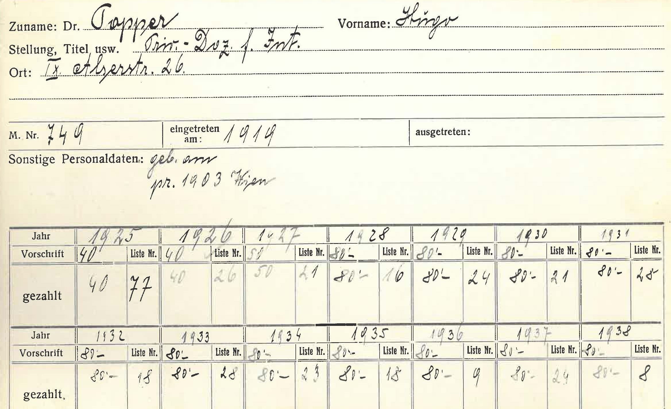 Hugo Popper promovierte 1903 in Wien und habilitierte sich 1919 für innere