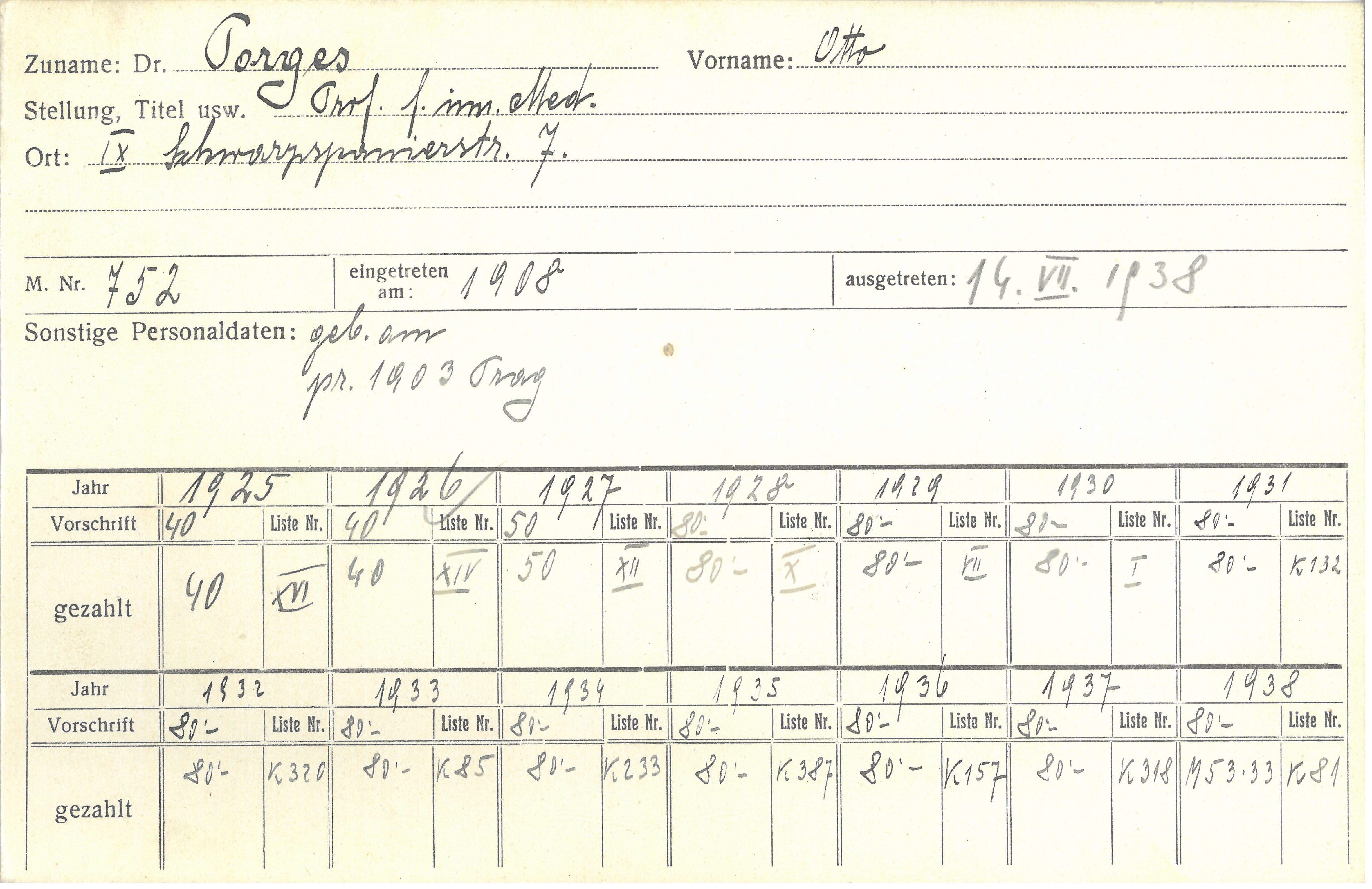 Otto Porges promovierte 1903 in Prag. Ab 1908 arbeitete er an der I. med.