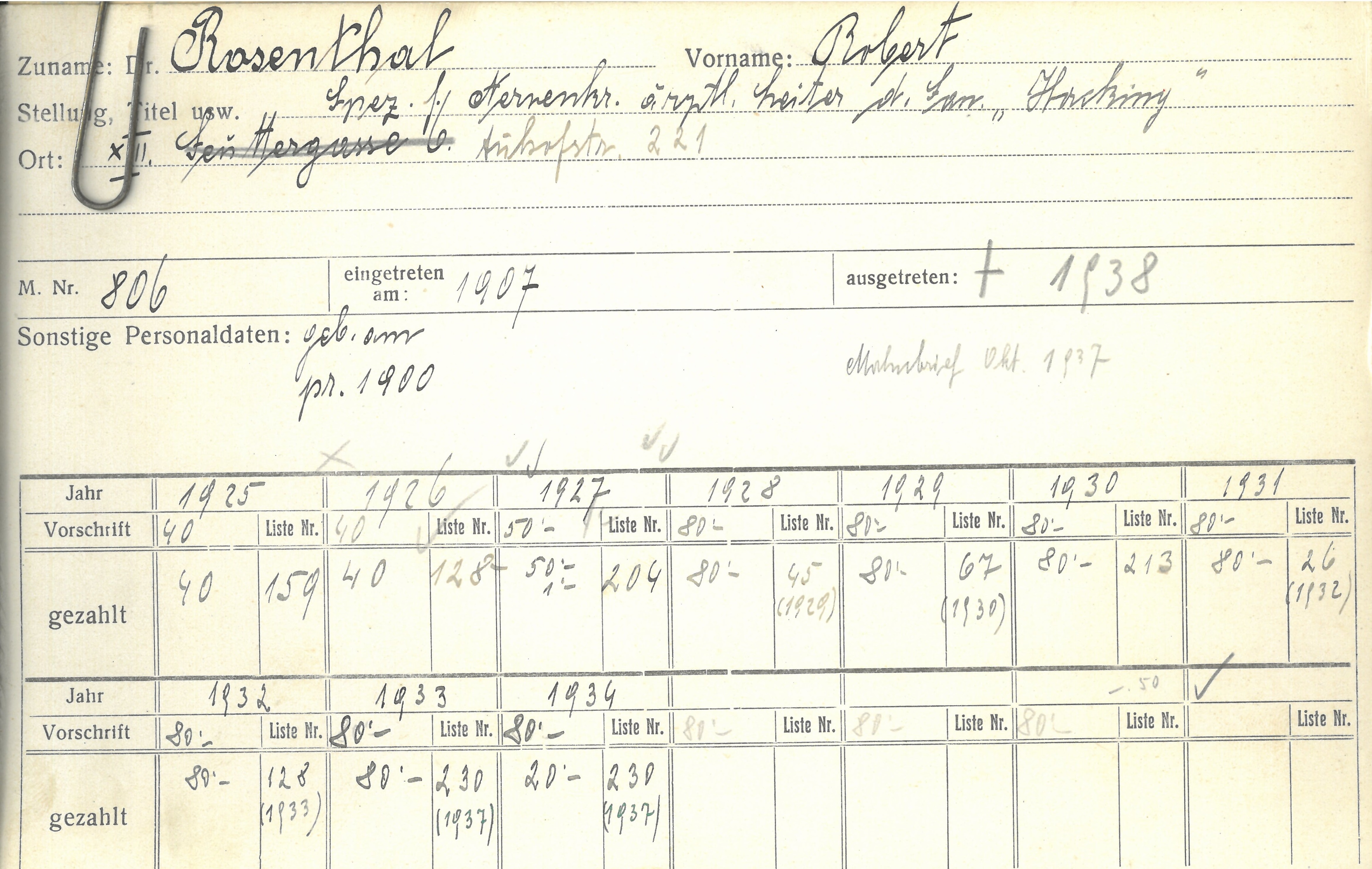 Robert Rosenthal stirbt am 1 April 1938 im Alter von 64 Jahren in Wien unter bisher jetzt ungeklärten Umständen.