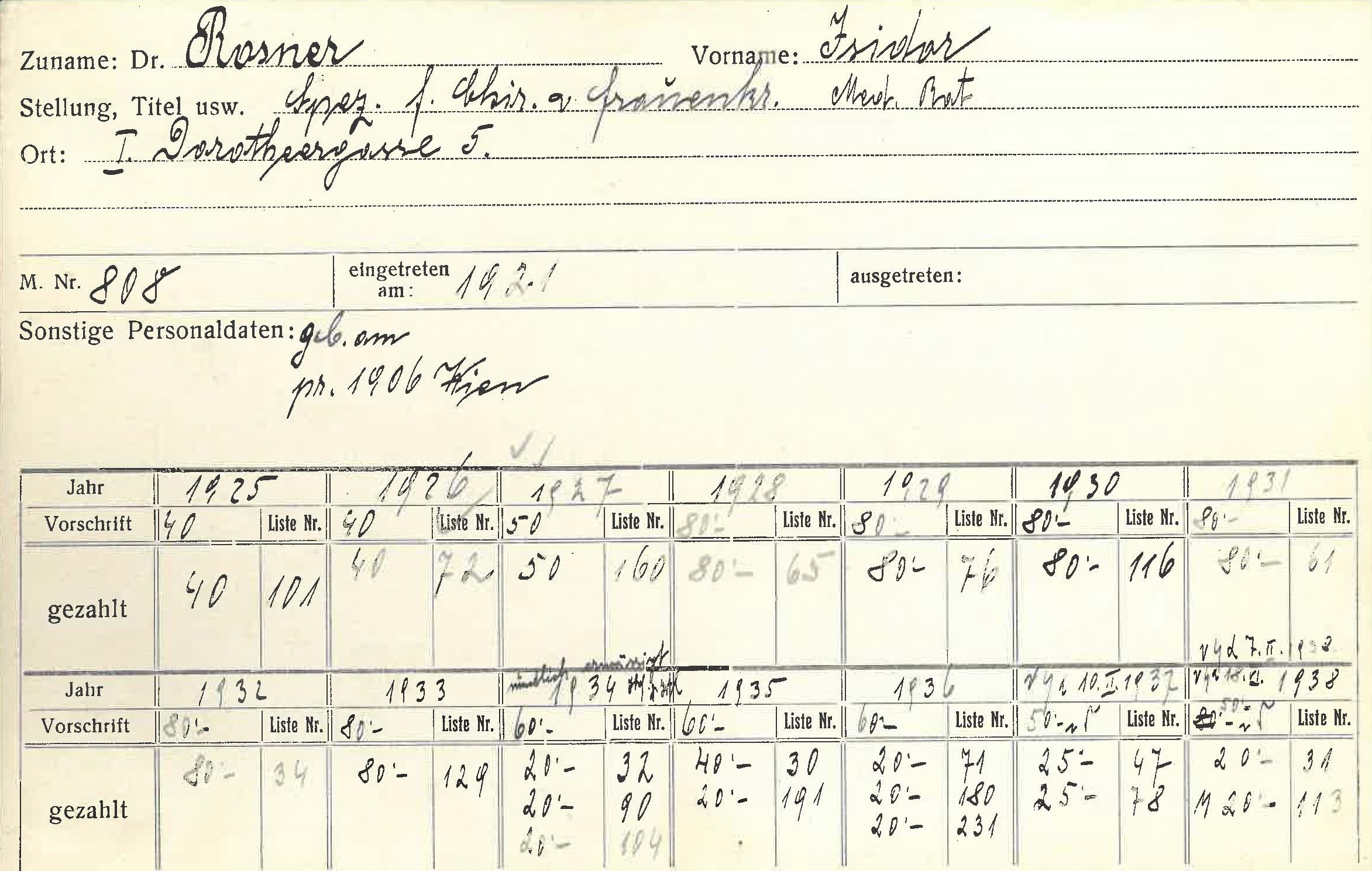 Adresse (von Karteikarte) Dorotheergasse 5, 1010 Wien