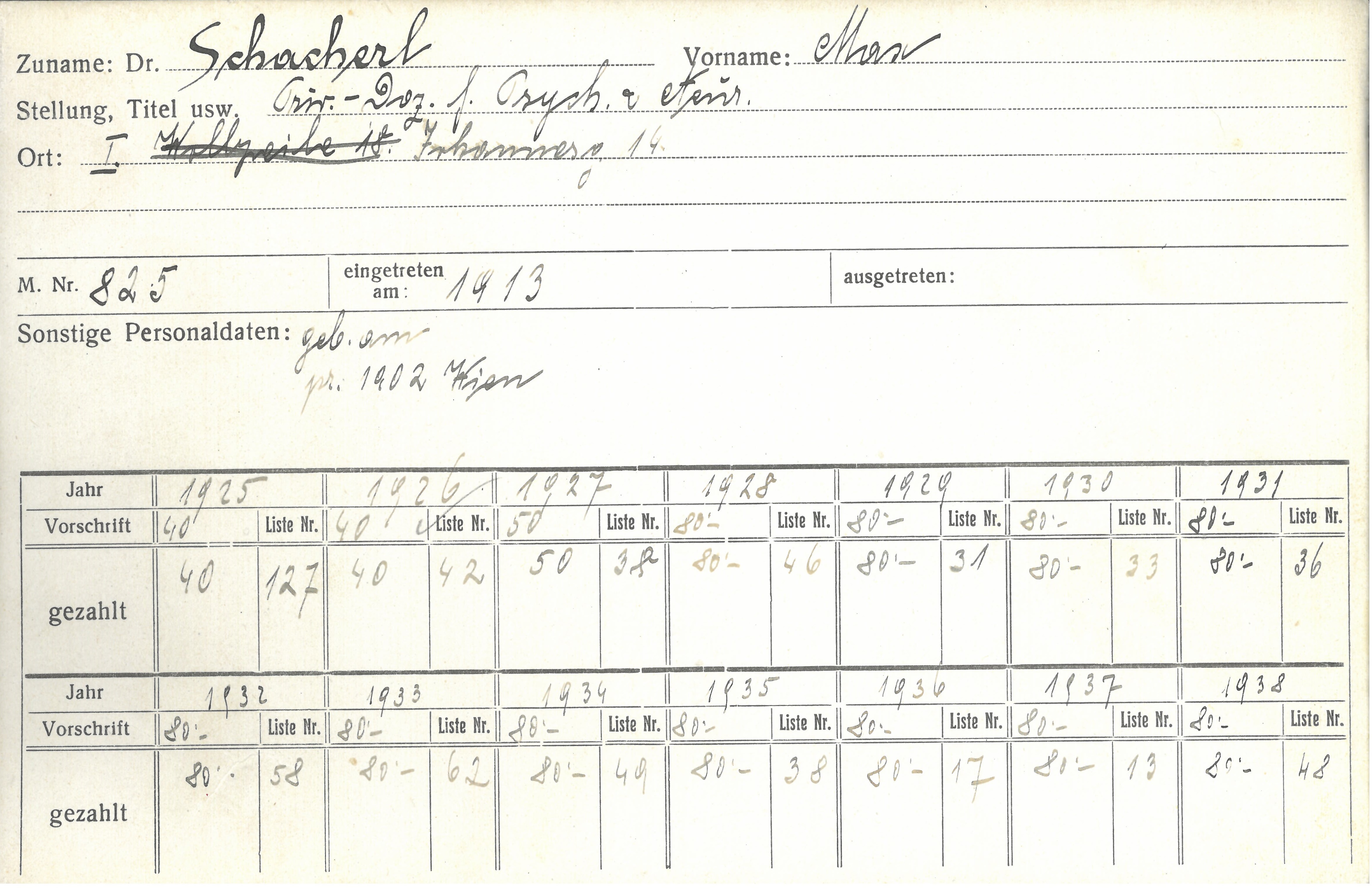Seine Tätigkeit als Dozent für Neurologie musste Schacherl im April 1938