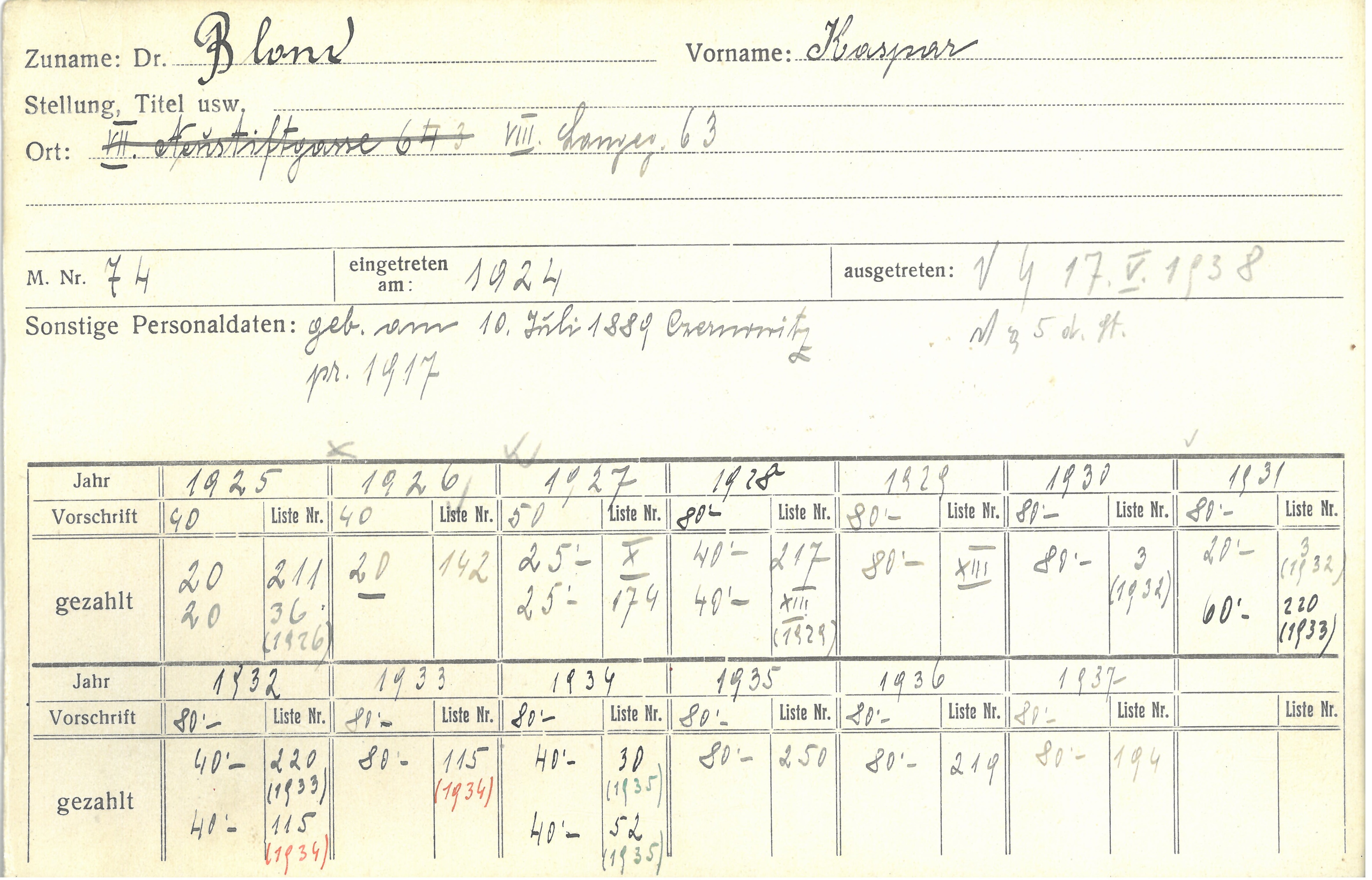 Blond hielt folgende Vorträge in der Gesellschaft der Ärzte in Wien: Duodenektomie (16.11.1928), Zur Verhütung postoperativer Ulcera nach Magenoperationen (10.5.1929), Zur Pathologie und Therapie des varikösen Symptomenkomplexes des Mastdarms (8.6.1934).