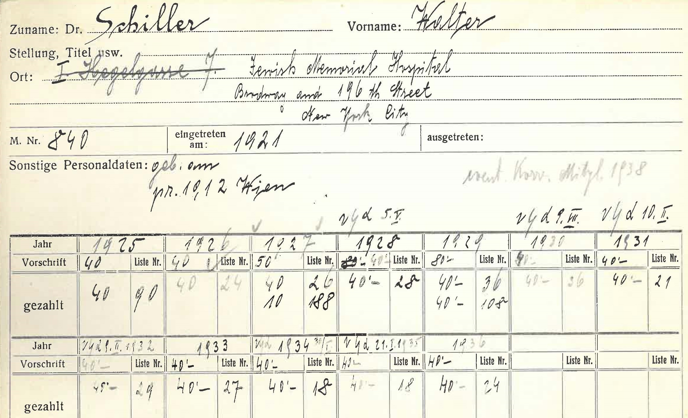 Walther Schiller (1893–1986) gelang die Flucht nach England, wo er im Alter von 92 Jahren 1986 verstarb. Text: Josef Hlade