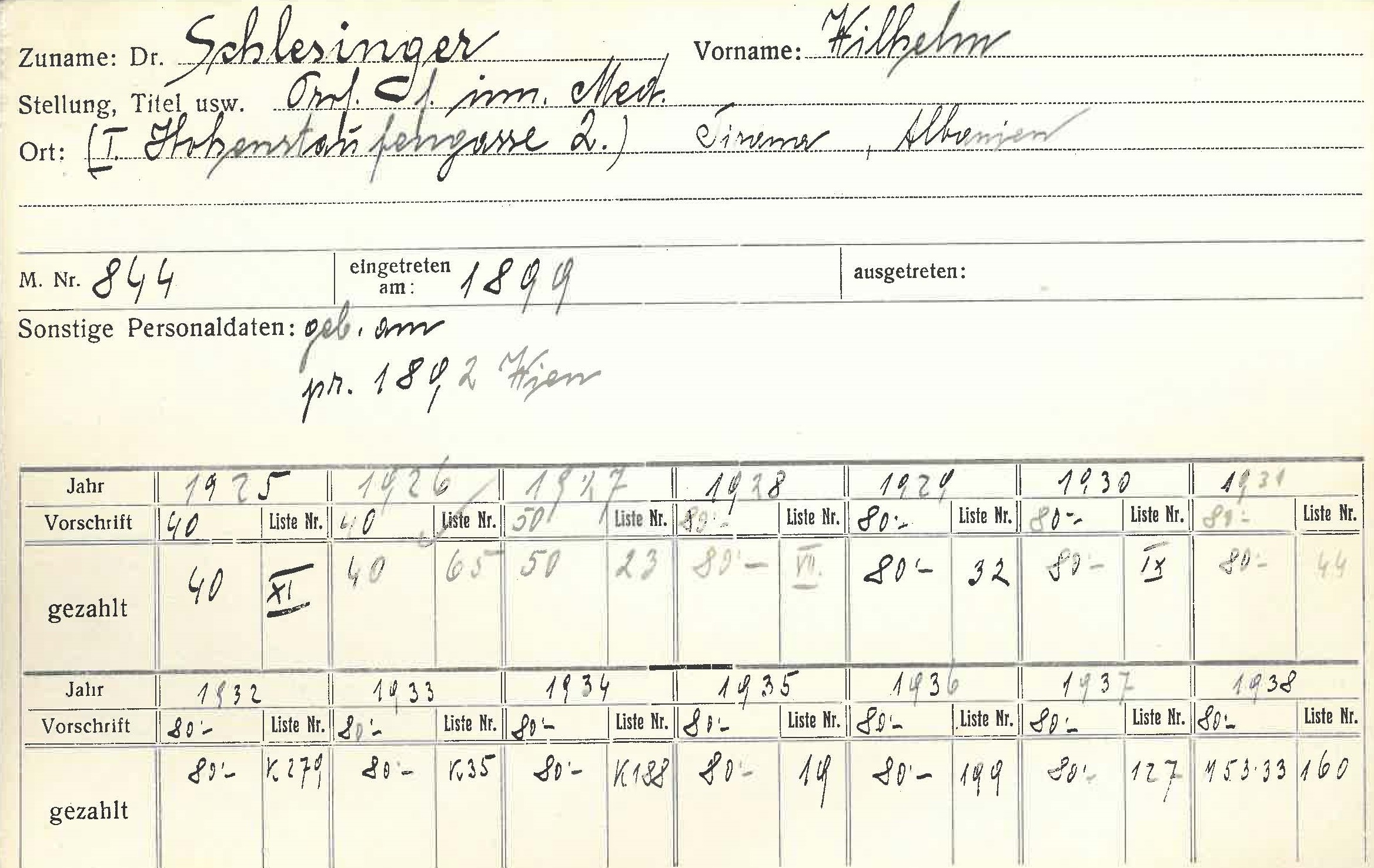 1938 wurde Wilhelm Schlesinger von der Universität Wien vertrieben. Er