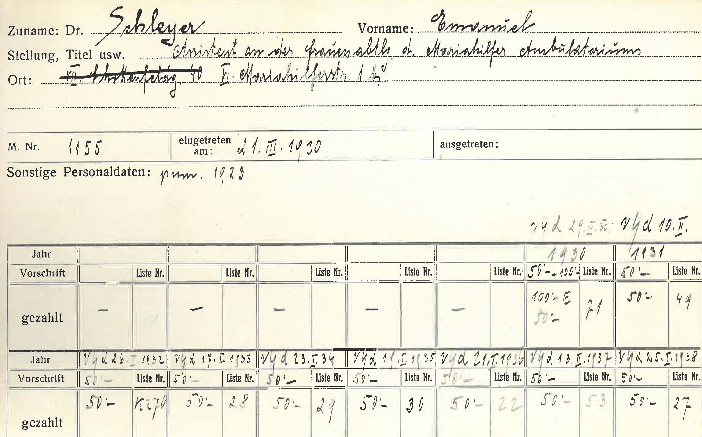 Assistent an der Frauenabteilung des Mariahilfer Ambulatoriums