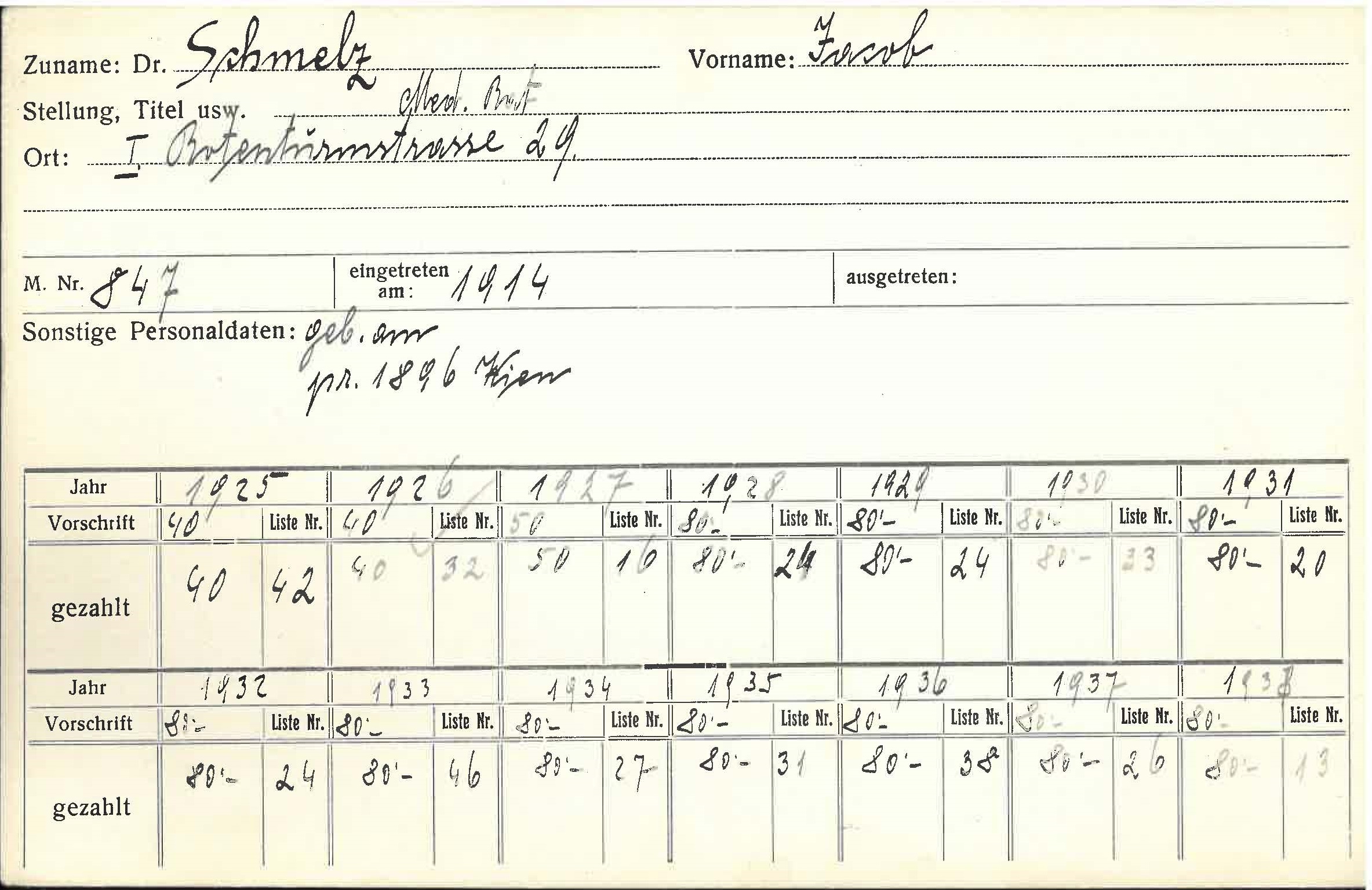 Adresse (von Karteikarte) Rotenturmstraße 29, 1010 Wien