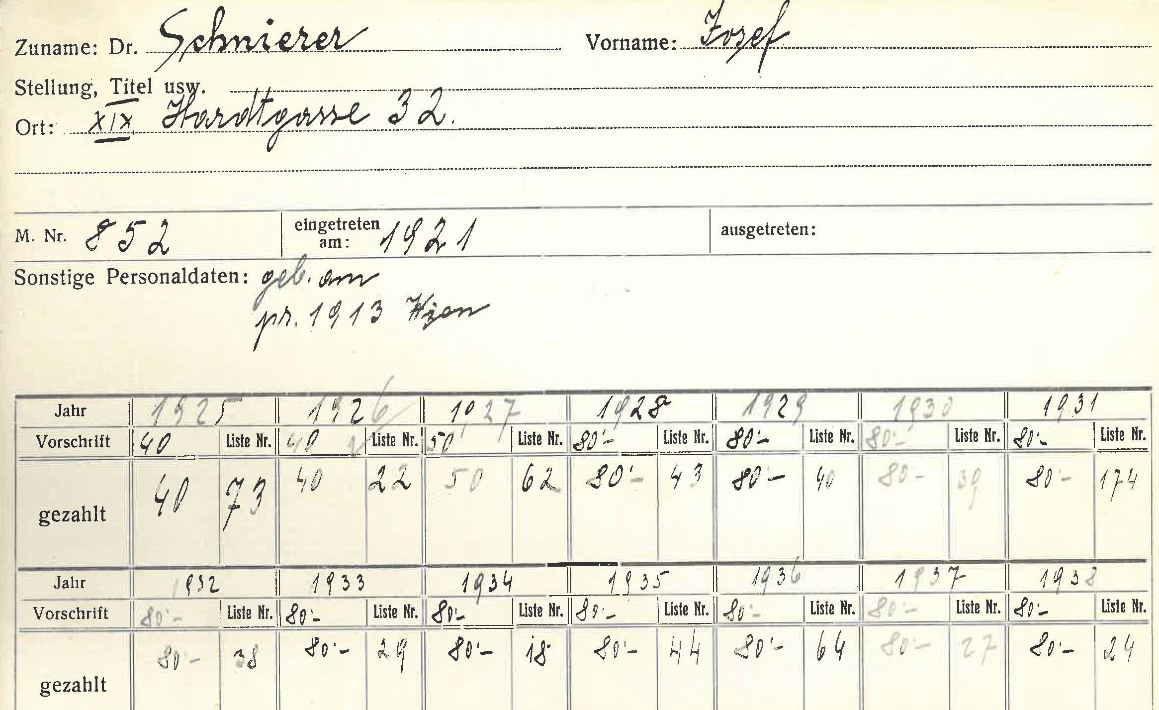 Adresse (von Karteikarte) Hardtgasse 32, 1190 Wien