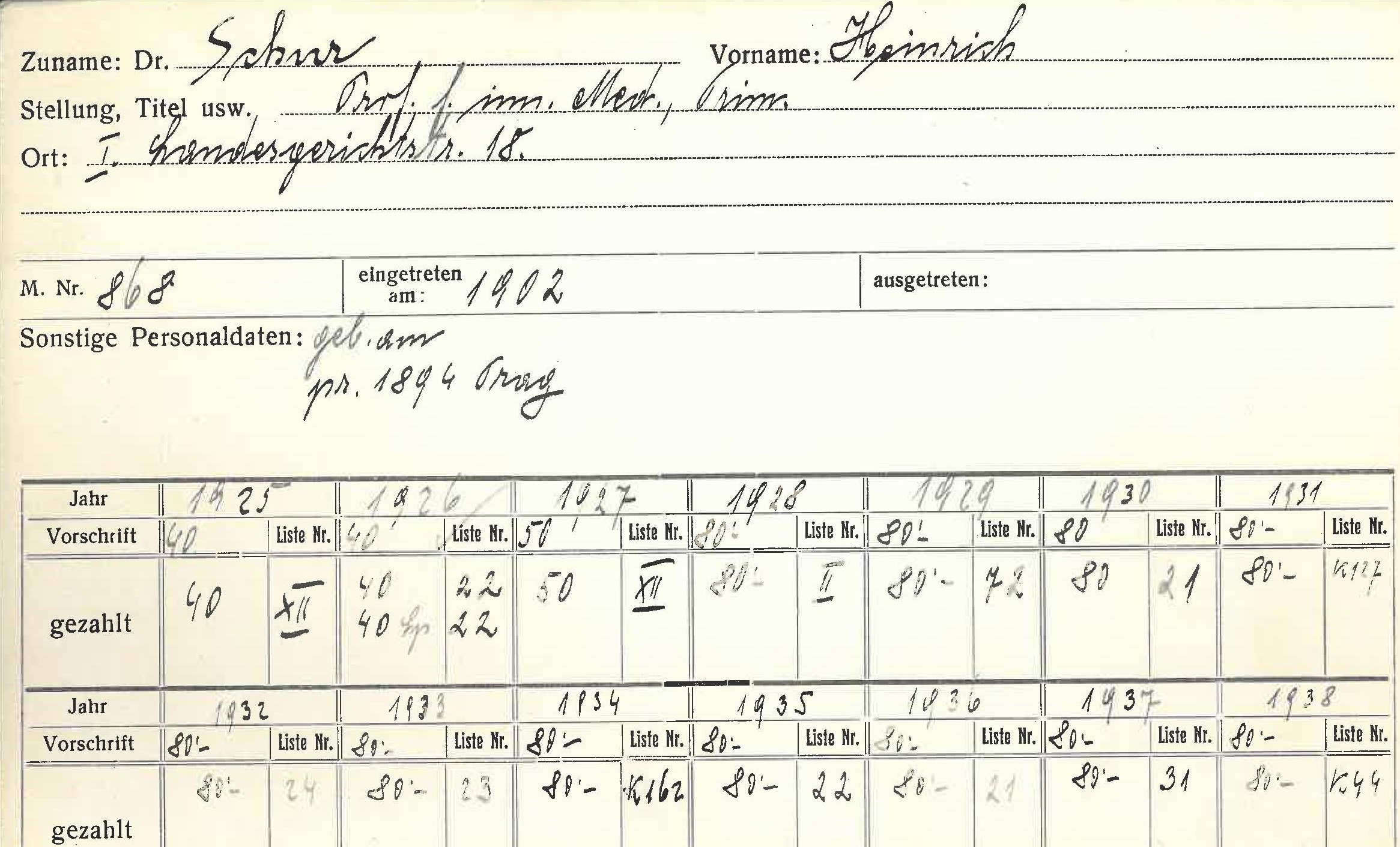 1938 wurde Heinrich Schur als Vorstand der I. medizinischen Abteilung