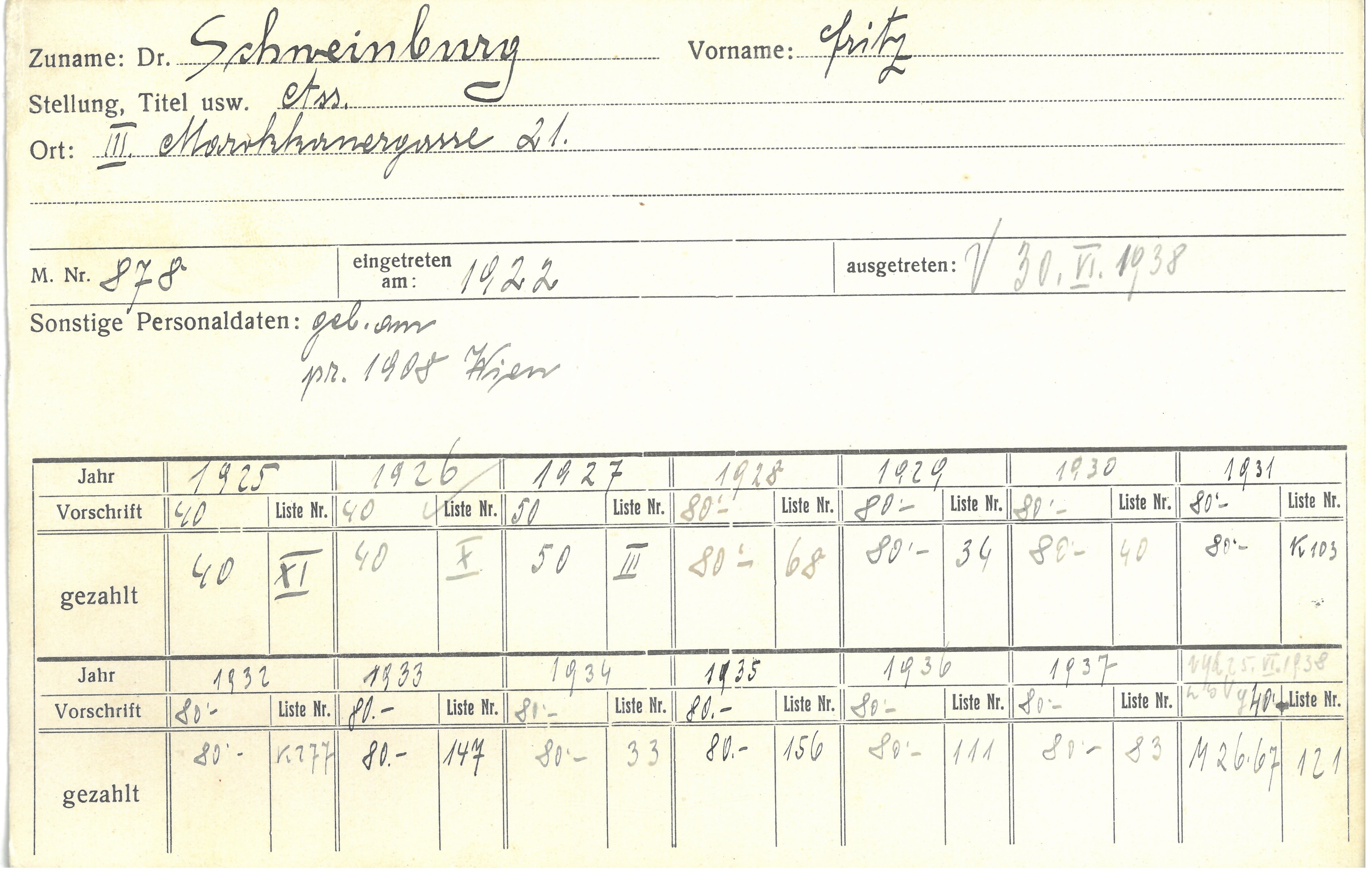 Fritz Schweinburg gelang nach dem "Anschluss" die Flucht in die USA, wo er im Oktober 1962 verstarb.