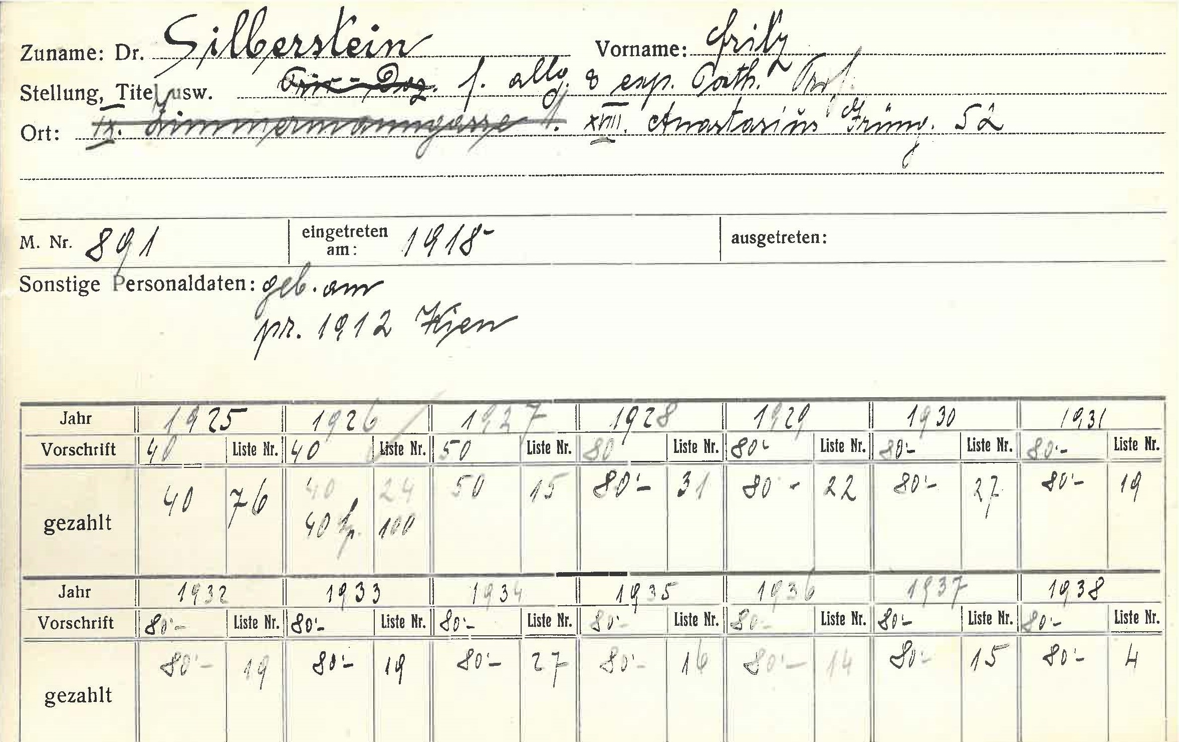 Friedrich Silberstein promovierte 1912 und erlangte 1920 seine Habilitation