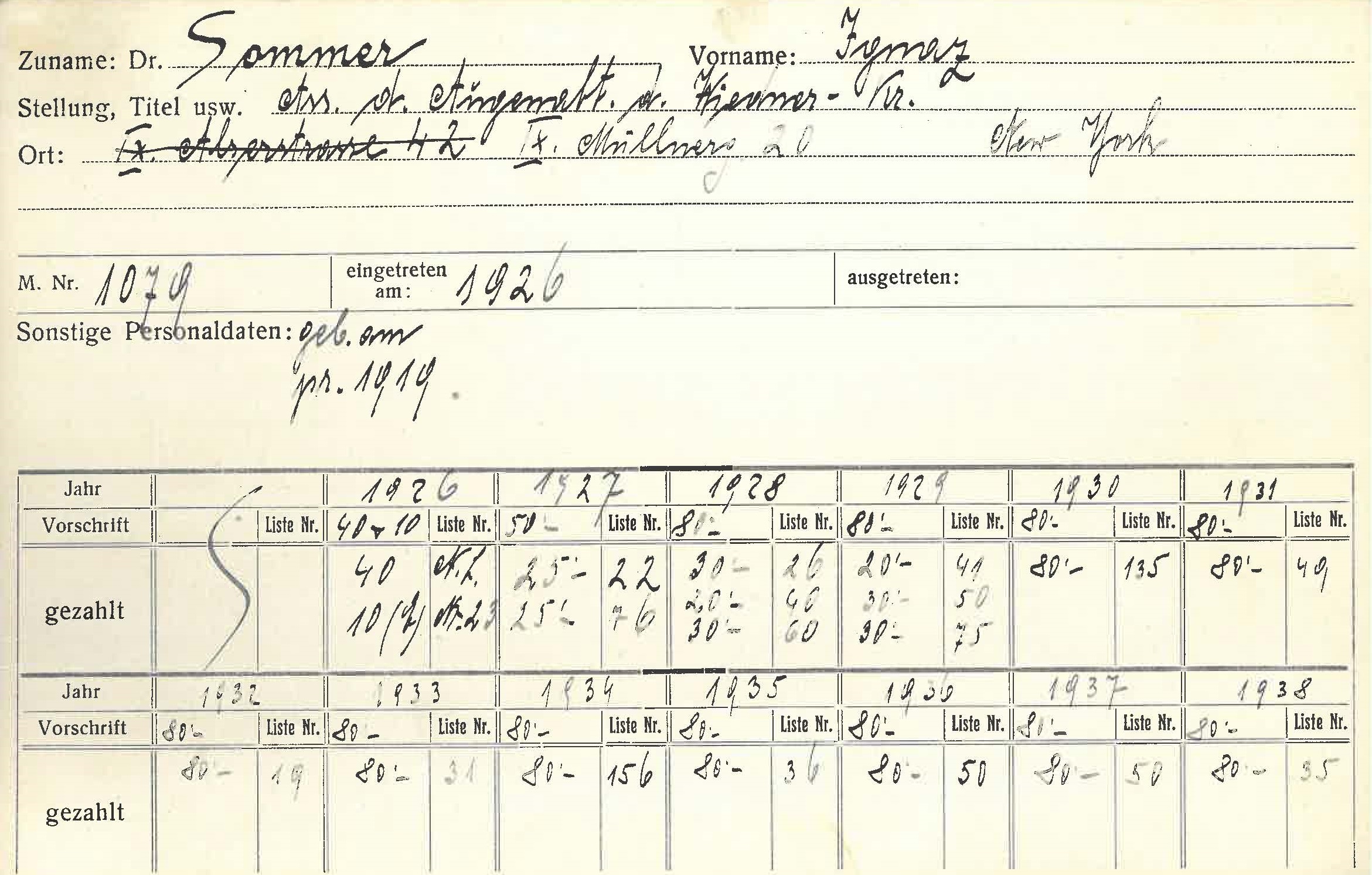 Adresse (von Karteikarte) Müllnergasse 20, 1090 Wien