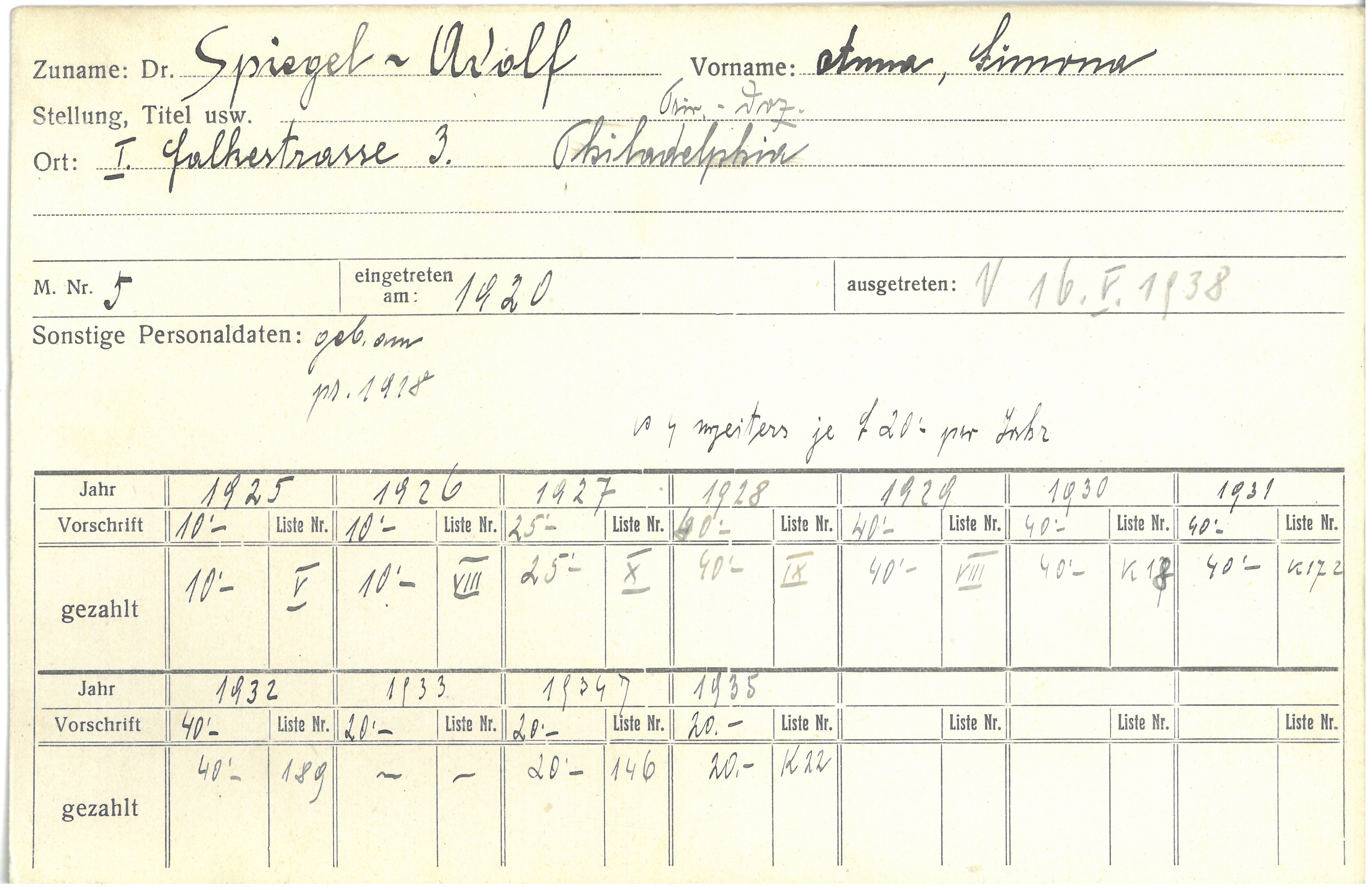 Ihre Assistentenstelle in Wien hatte Anna Simona Spiegel-Adolf zunächst