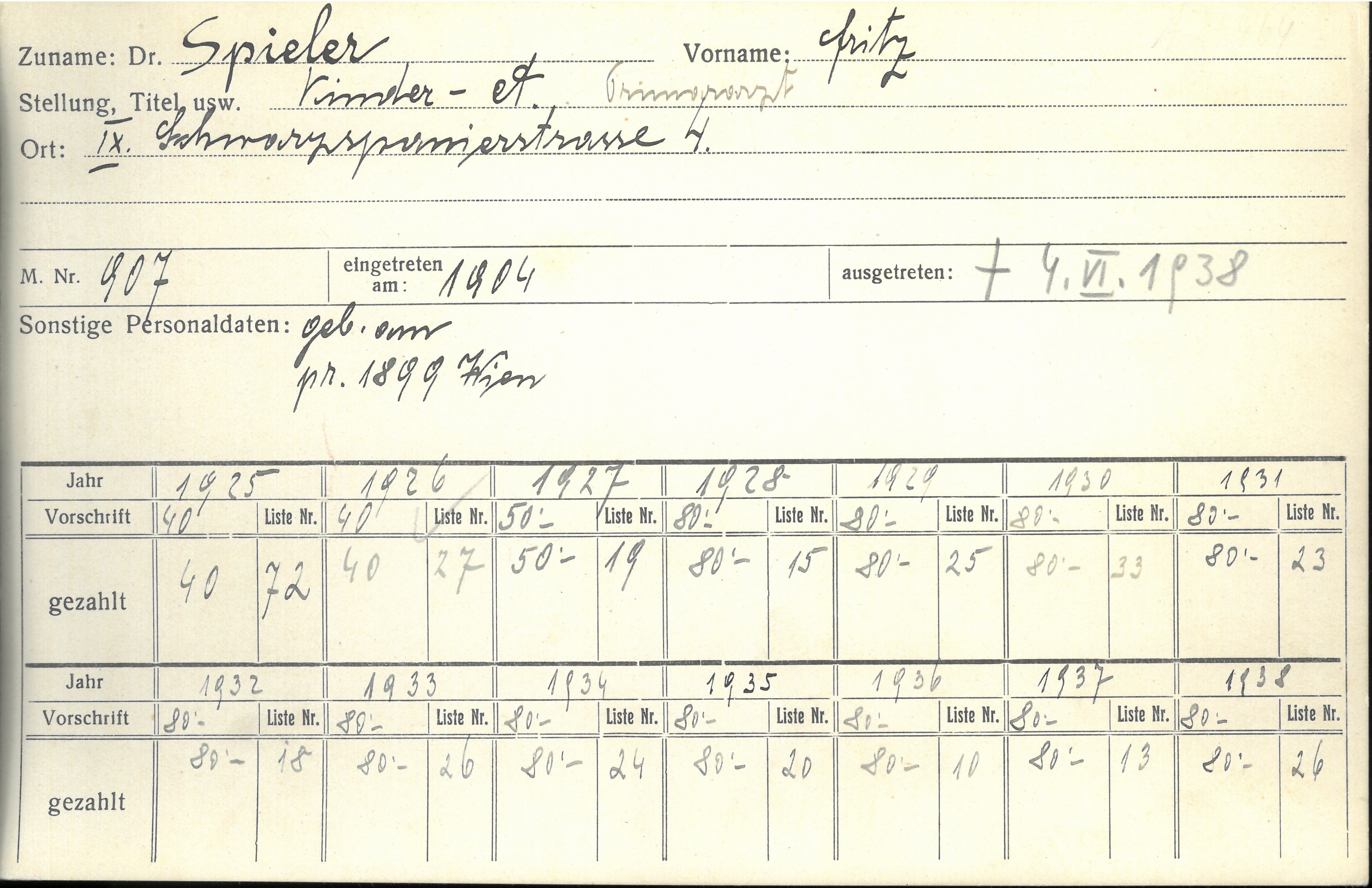 Adresse (von Karteikarte) Schwarzspanierstraße 4, 1090 Wien