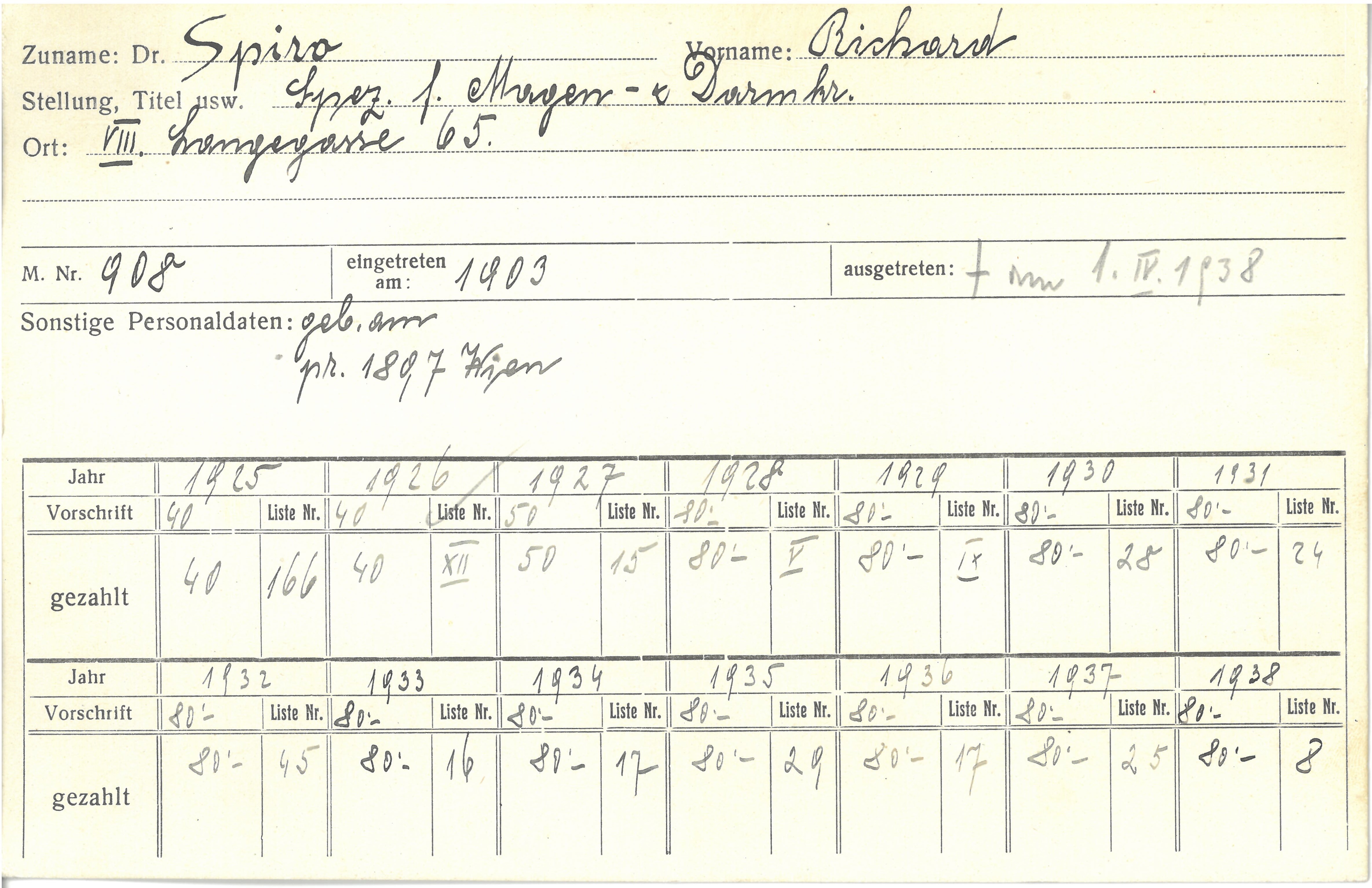 Richard Spiro starb am 1. 4. 1938 in Wien aus bisher ungeklärten Umständen.