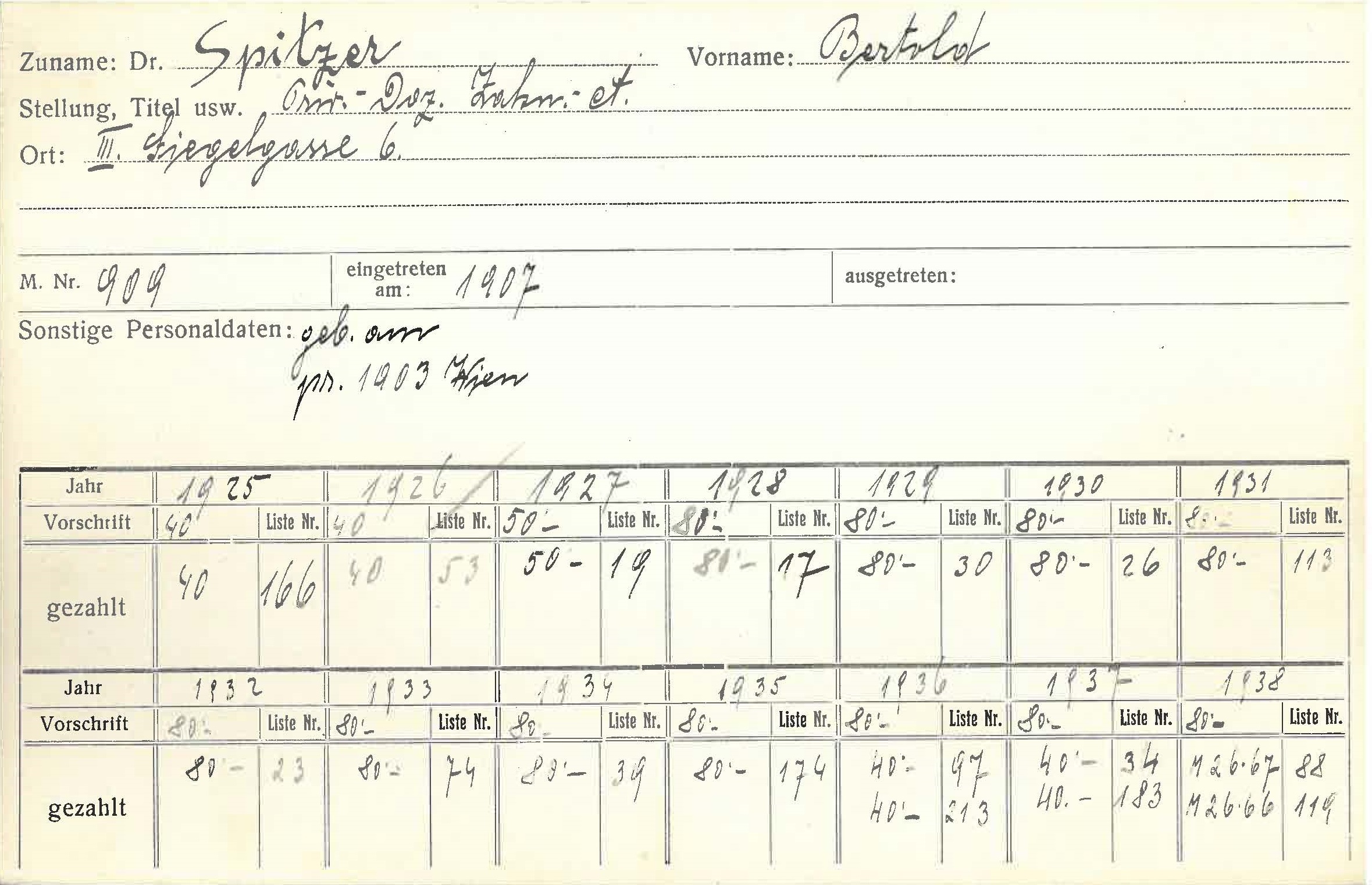 Berthold (auch: Bertold) Spitzer promovierte 1903 und arbeitete ab 1922 als