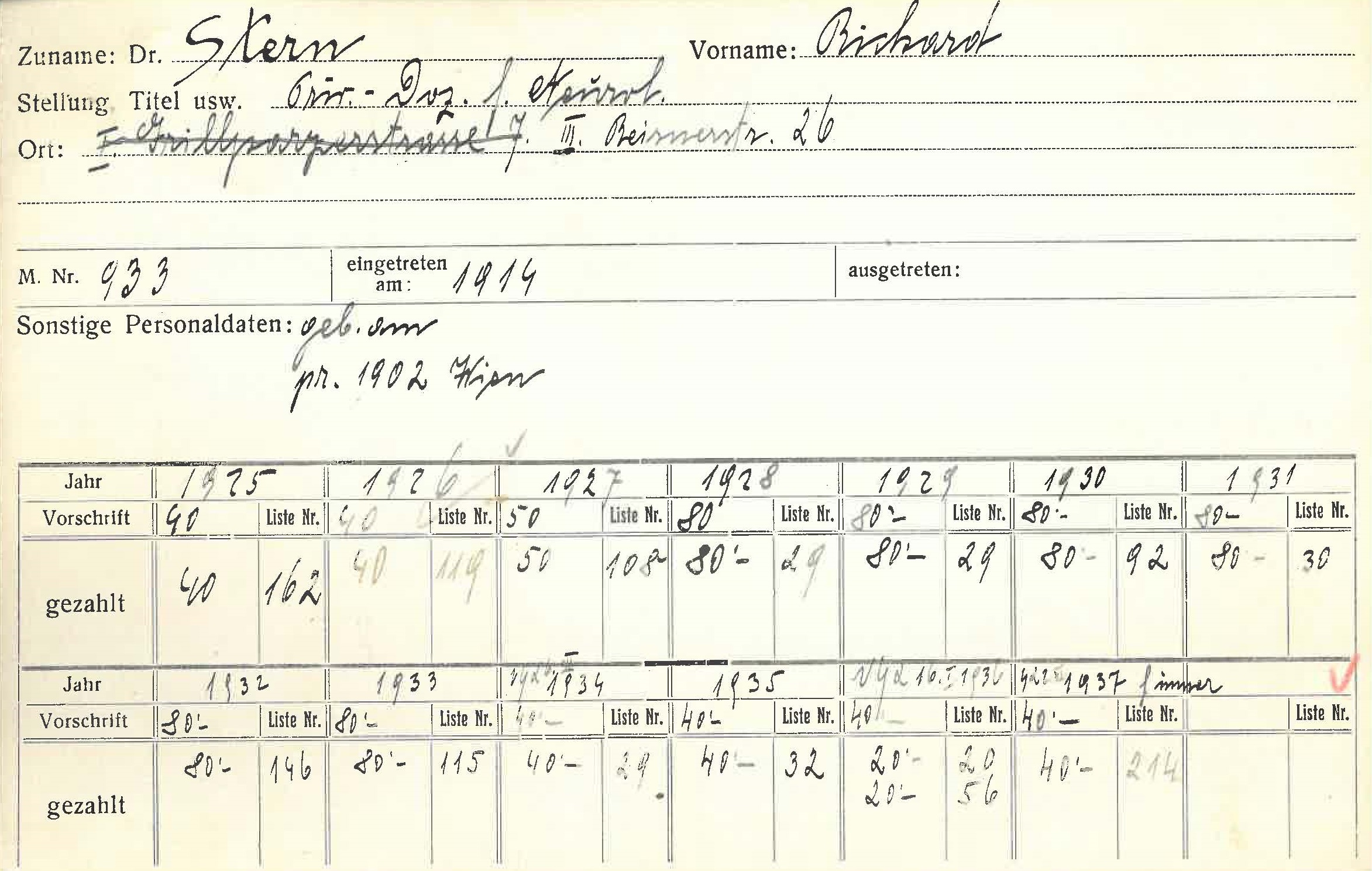 Im Juli 1938 wurde Richard Stern aus dieser Anstellung entlassen und von