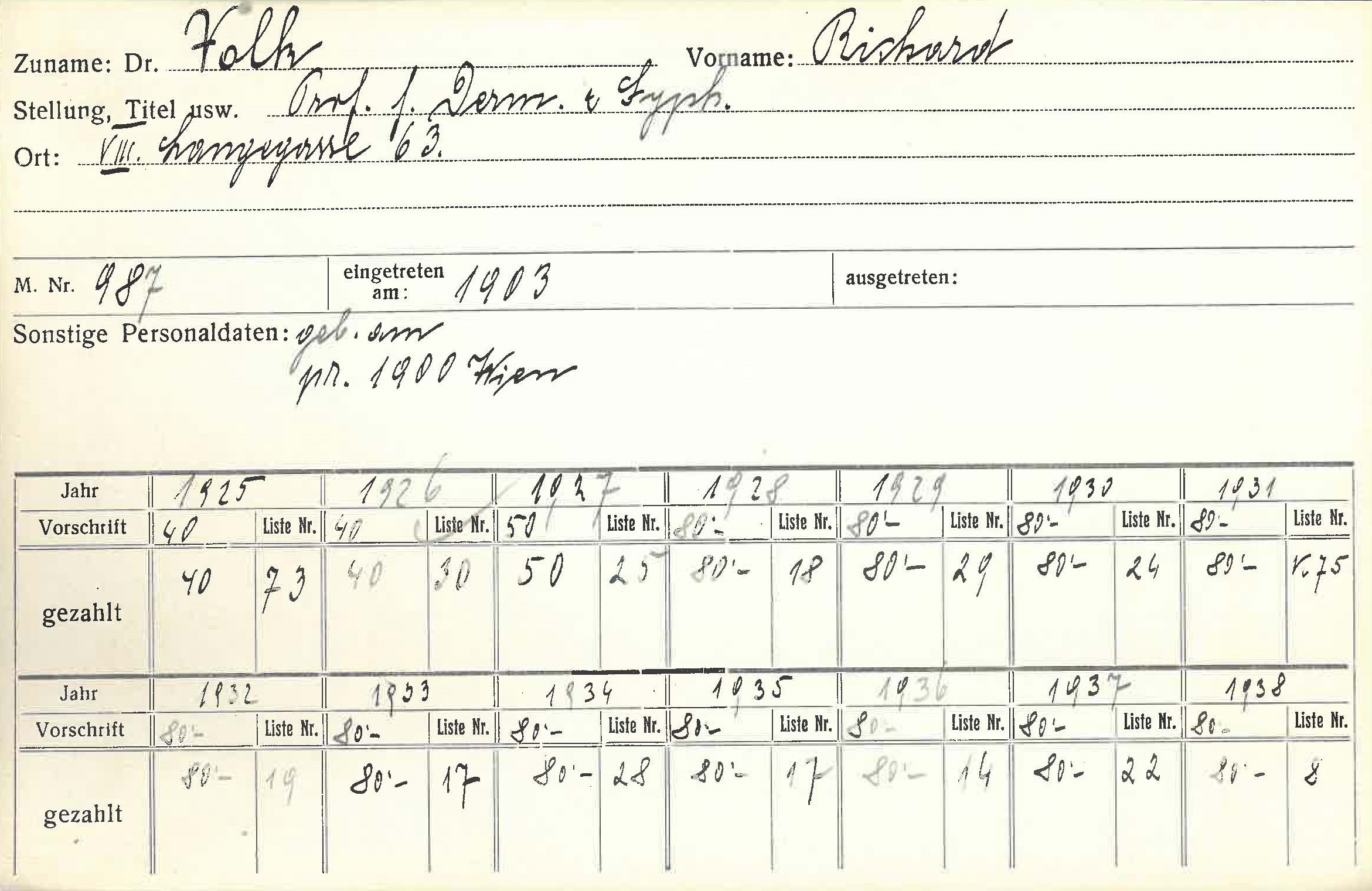 Richard Volk promovierte 1900 und erlangte 1912 die Habilitation für