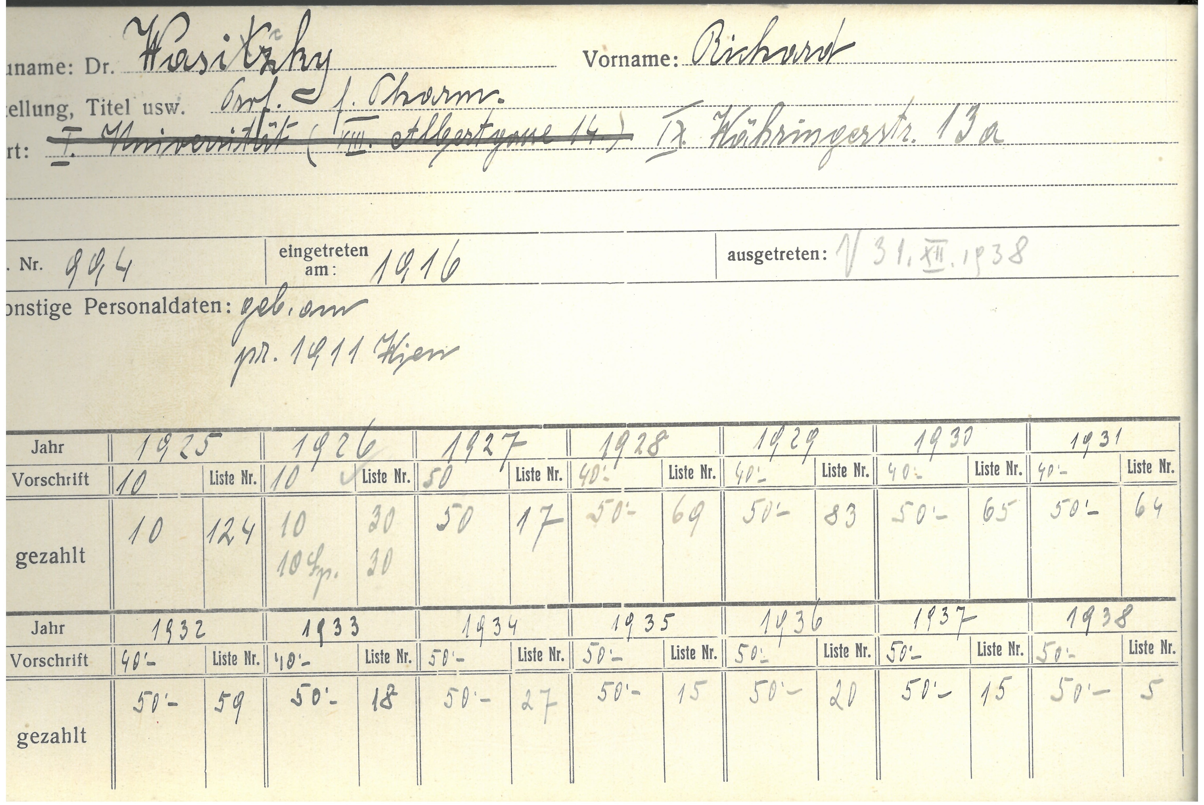 ordentlichen Professor ernannt wurde. Von 1924 bis 1926 war Wasicky Dekan der medizinischen Fakultät.
