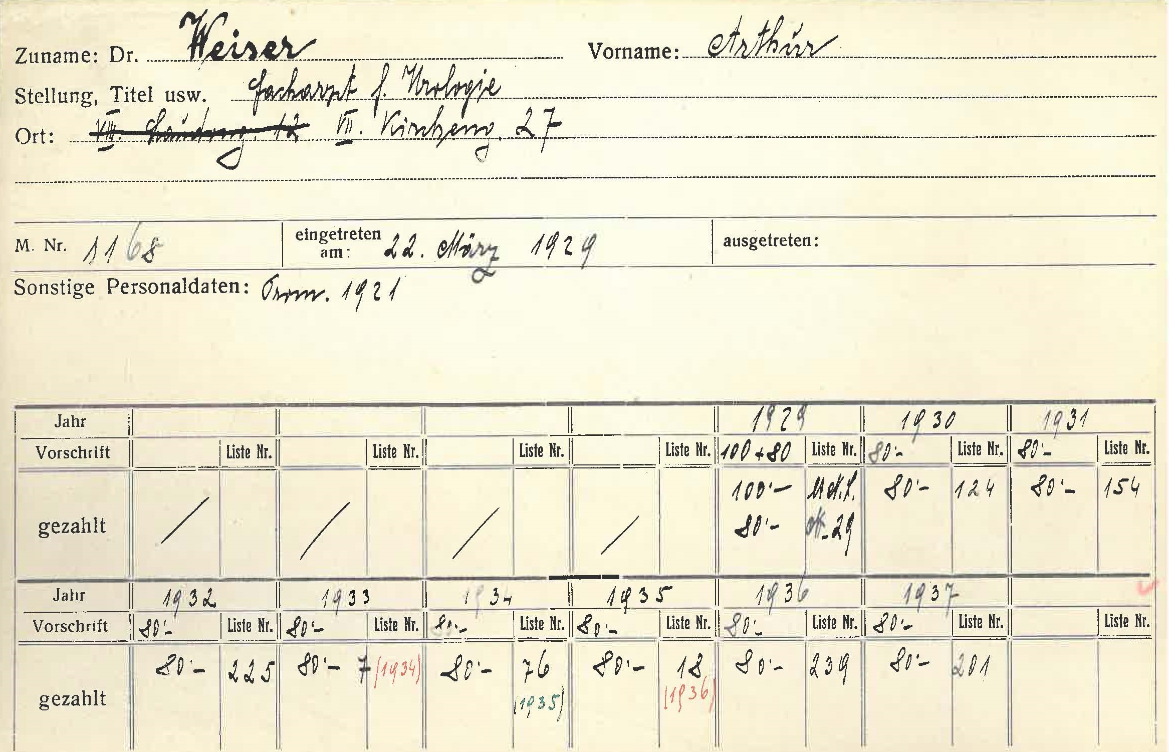 Adresse (von Karteikarte) Kirchengasse 27, 1070 Wien
