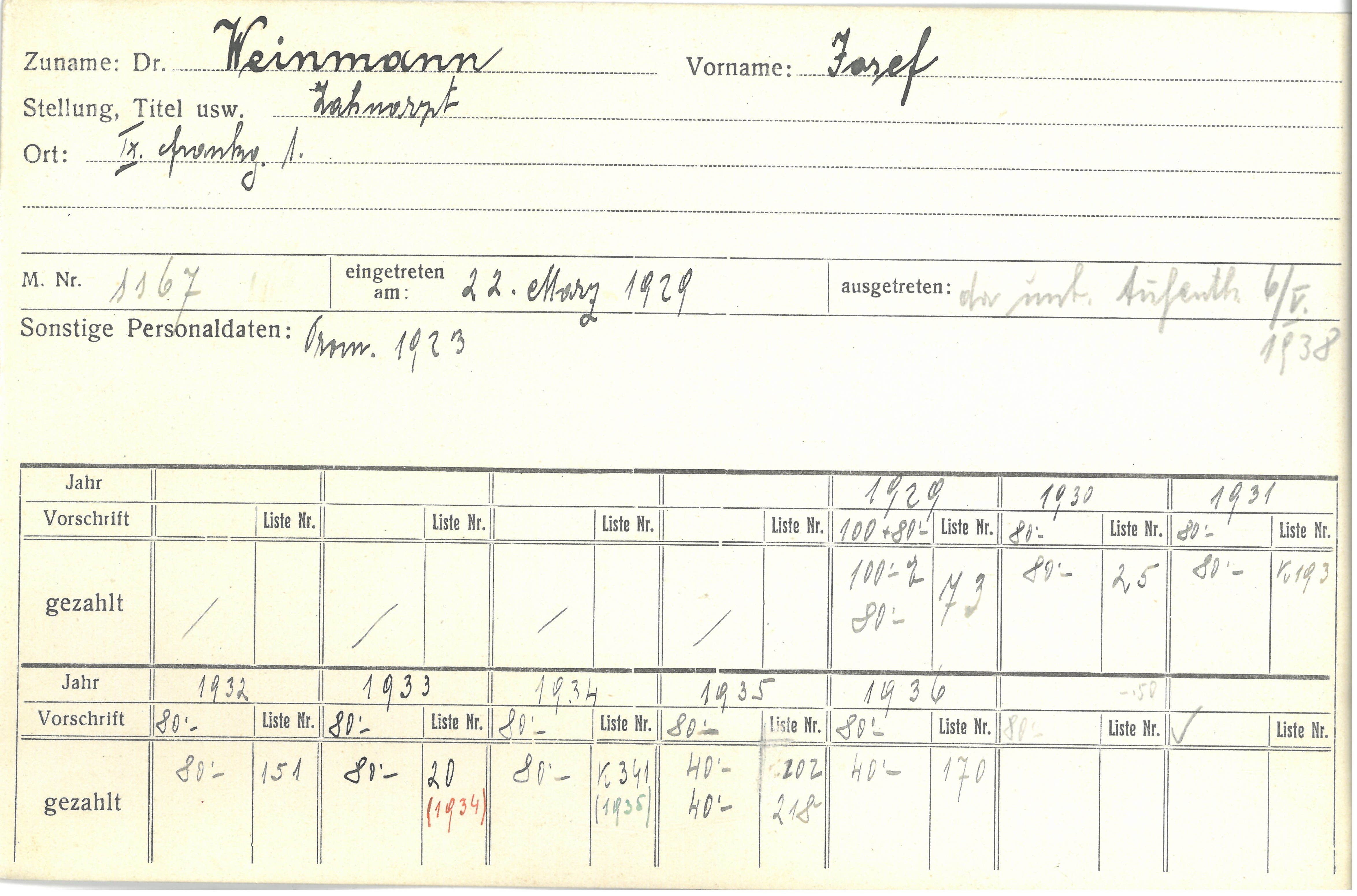 Josef oder Joseph P. Weinmann (1896–1960) gelang 1938 die Flucht in die USA.