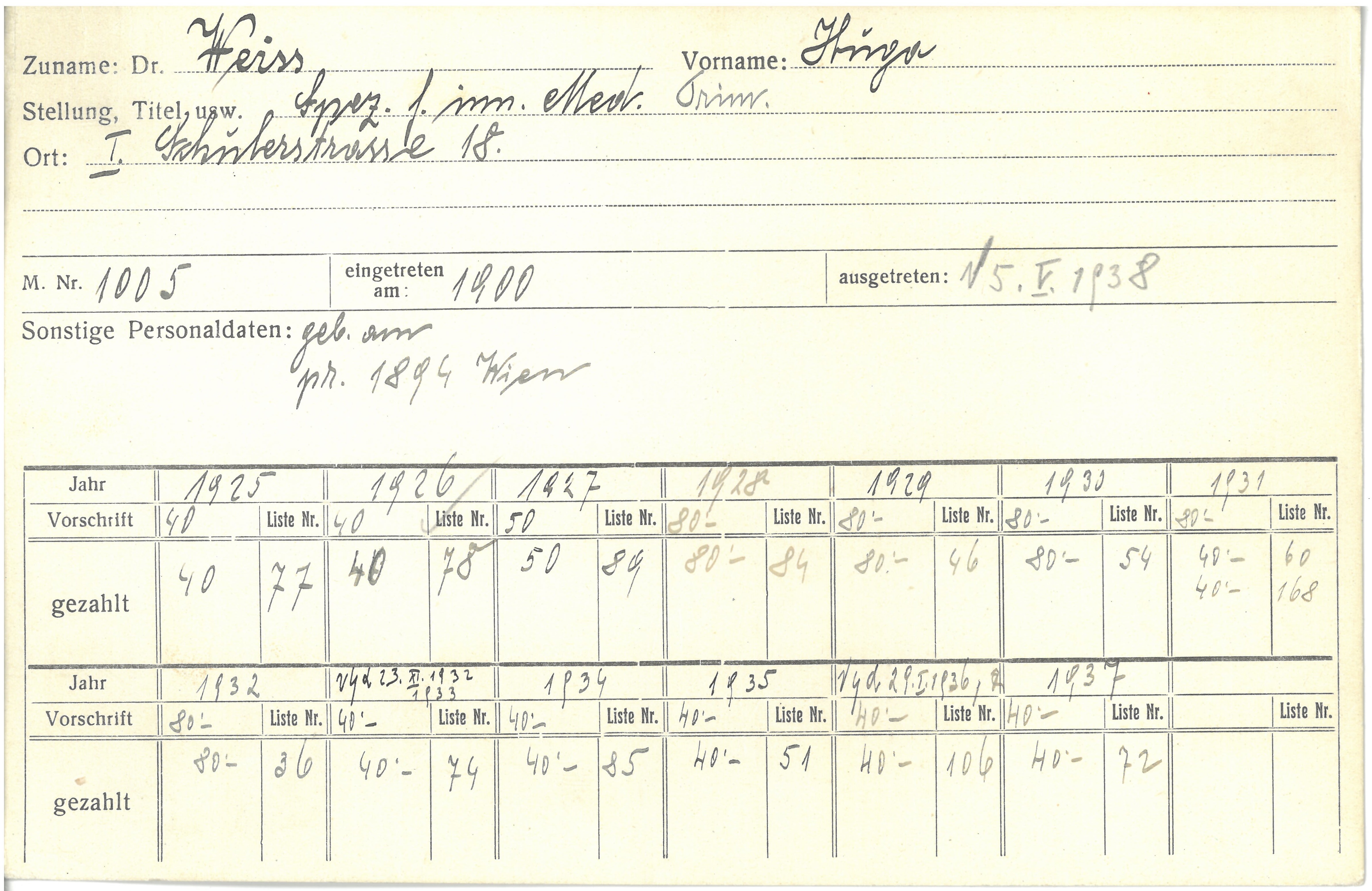 Adresse (von Karteikarte) Schulerstraße 18, 1010 Wien