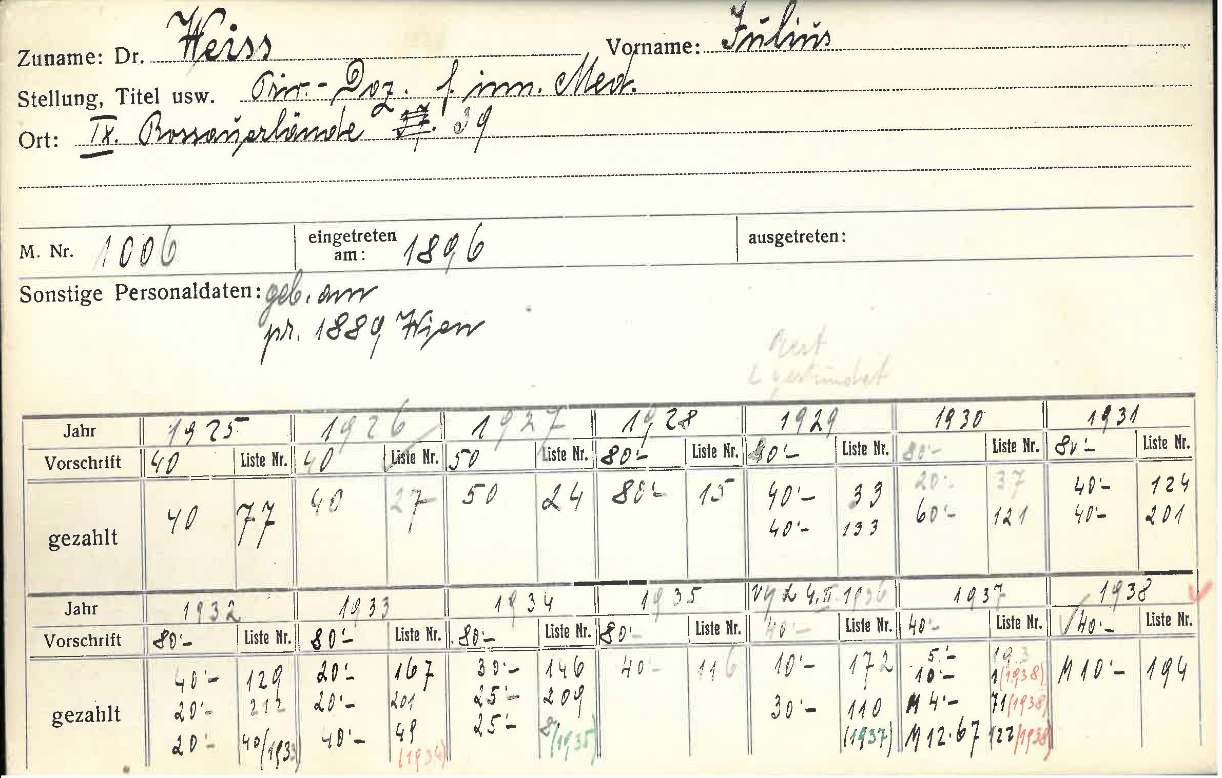 Holocaustopfer, am 15.10.1942 von Theresienstadt nach Treblinka überstellt. Chefarzt des Verbandes der Genossenschaftskrankenkassen Wiens, Herausgeber und Redakteur der Monatsschrift für praktische Medizin. Text: Josef Hlade