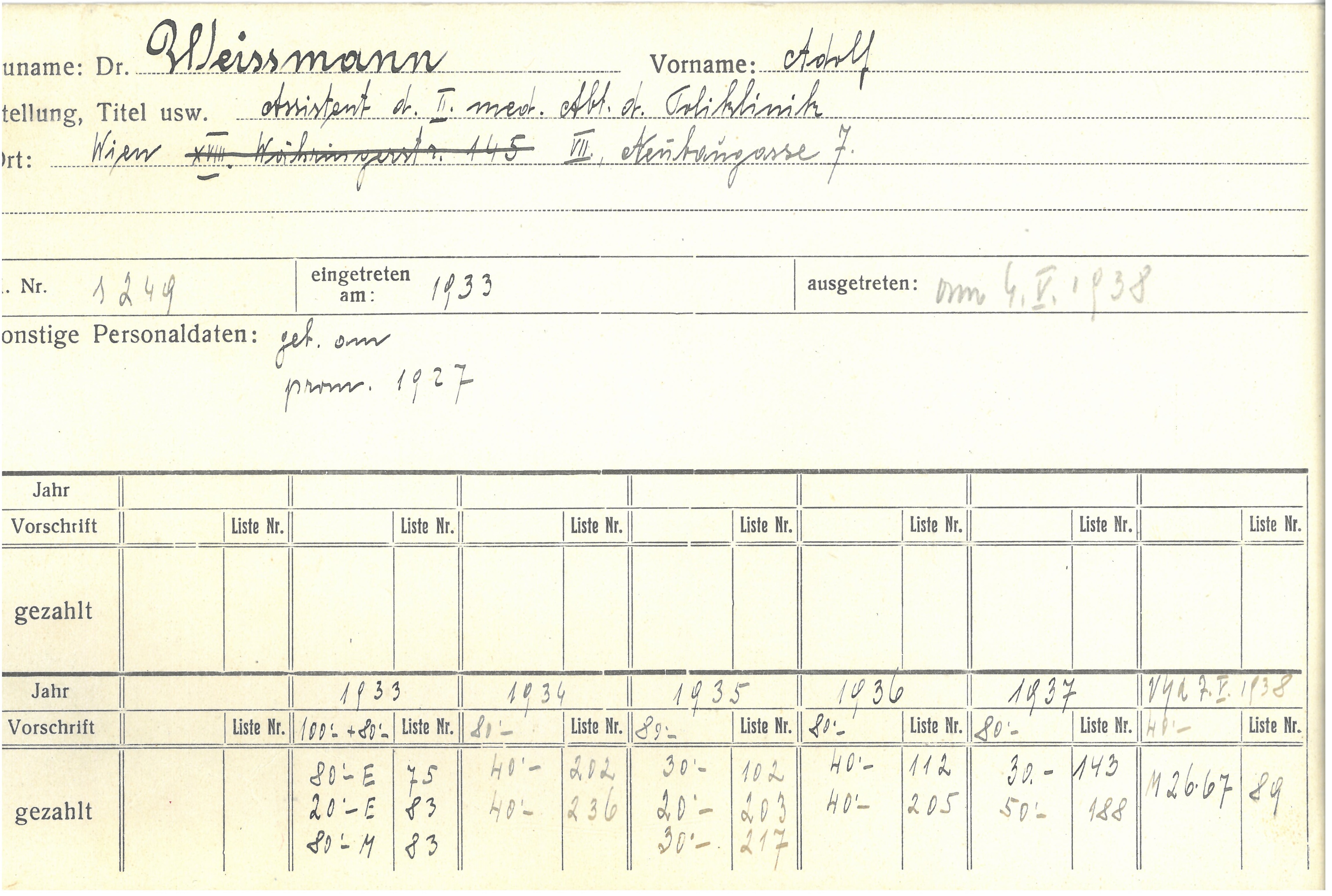 Adolf Weissmann (1901-1958) gelang die Emigration in die USA, wo er 1958 verstarb.