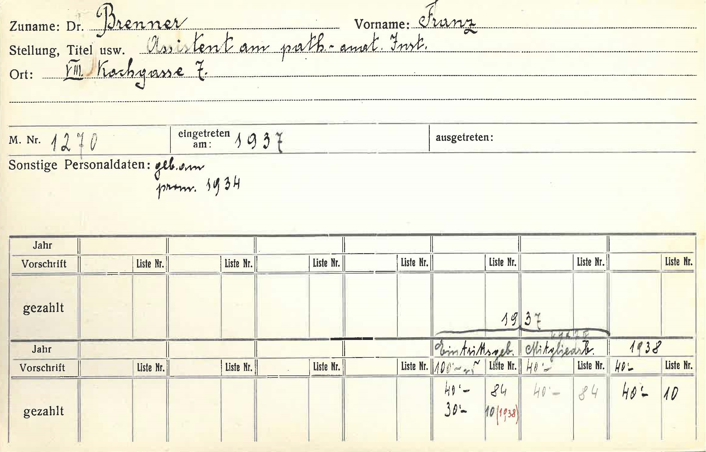 Für Franz Brenner überliefert uns Isidor Fischer keine Vorträge.