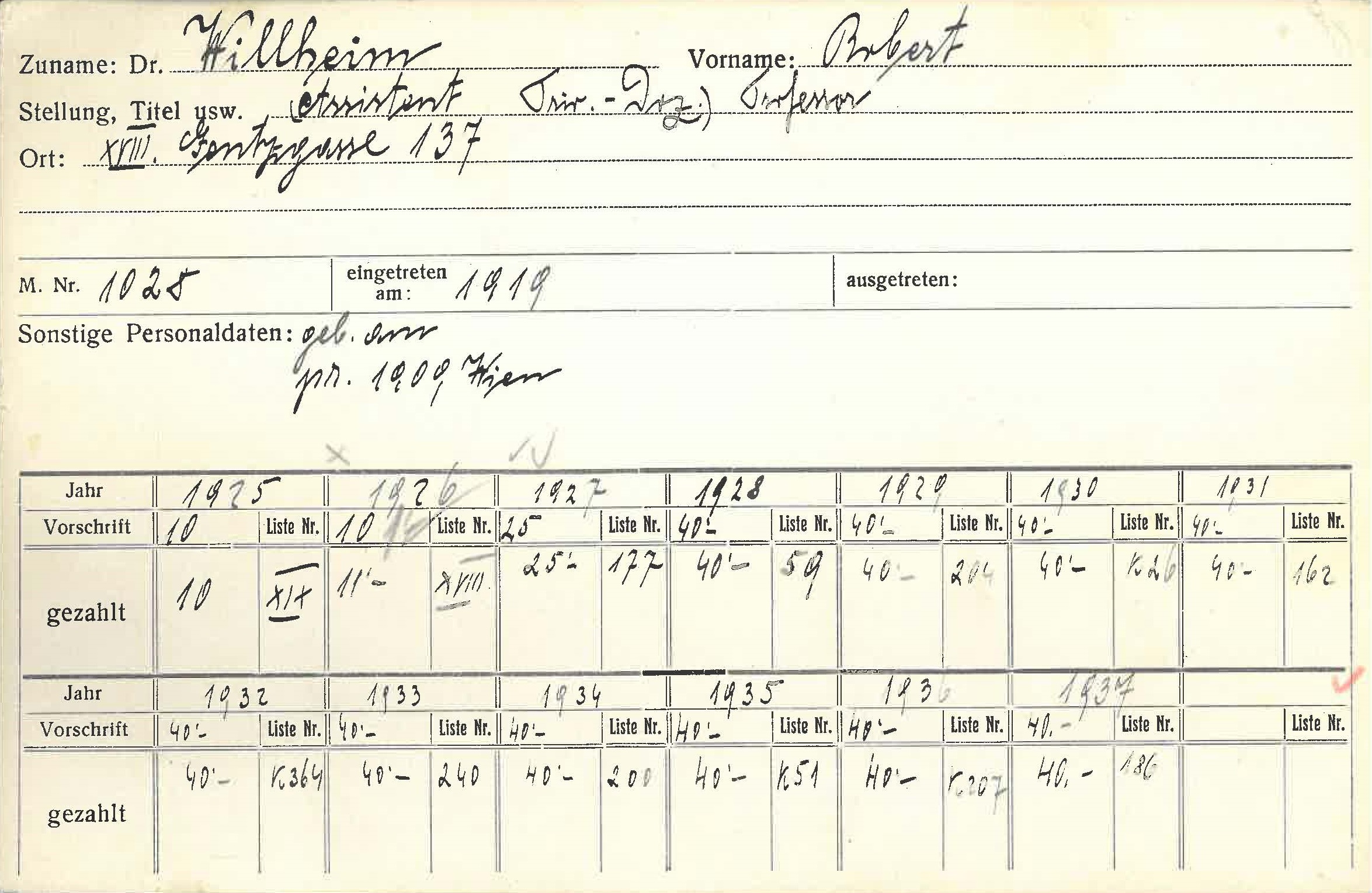 war er an der Universität Wien angestellt. 1927 habilitierte sich Willheim für