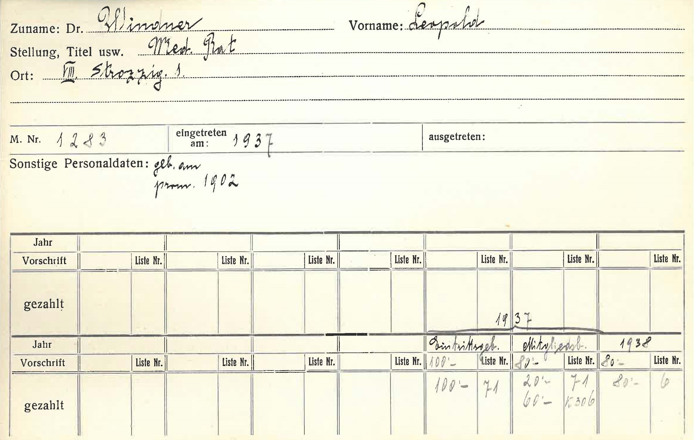 Adresse (von Karteikarte) Strozzigasse 1, 1080 Wien