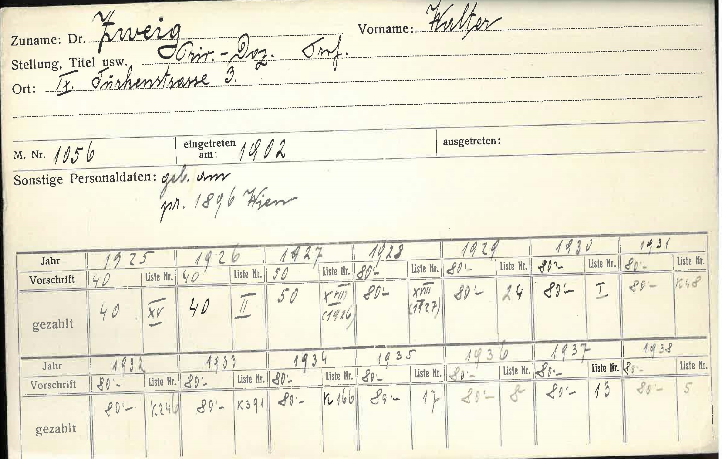 Im April 1938 verlor Zweig seine Lehrberechtigung. Zu diesem Zeitpunkt