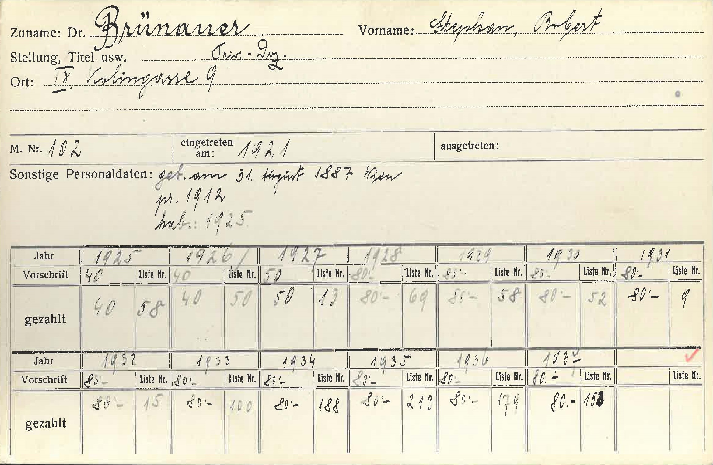 eigene Praxis im 9. Bezirk in Wien. Etwa 1927 nahm er eine Anstellung als