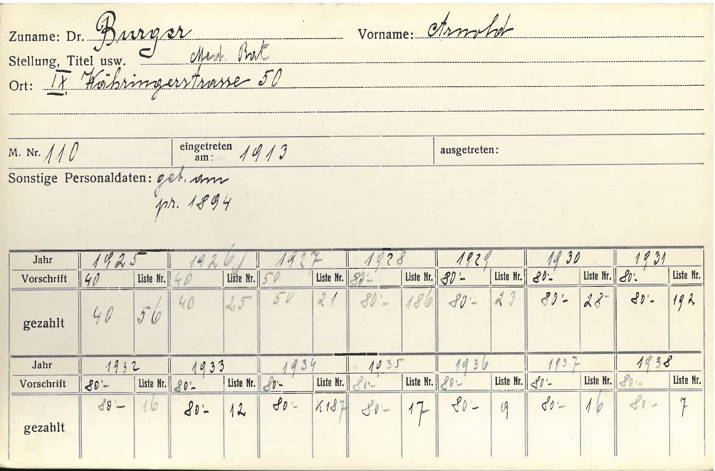 Arnold Burger hielt nach Isidor Fischer keinen Vortrag in der Gesellschaft der Ärzte in Wien.