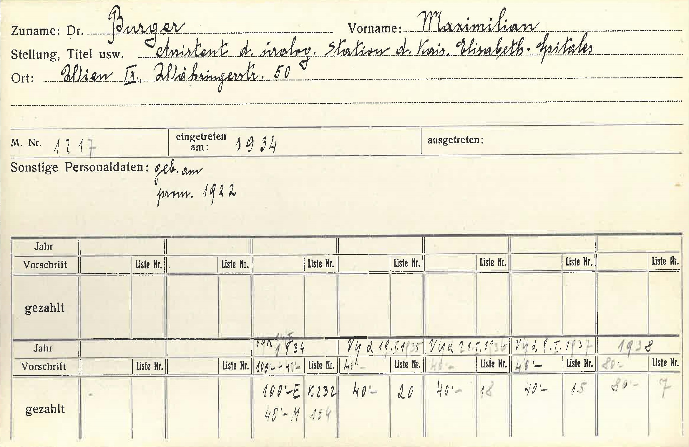 Burger hielt laut Isidor Fischer keine Vorträge in der Gesellschaft der Ärzte.
